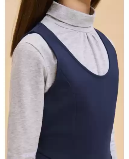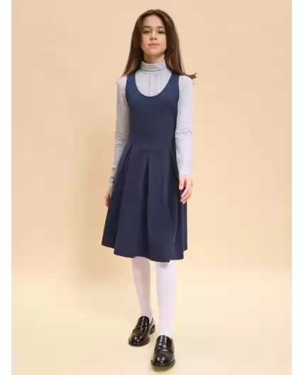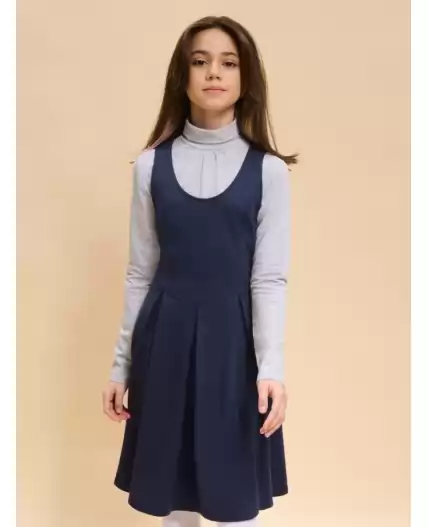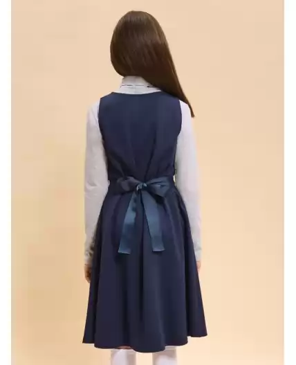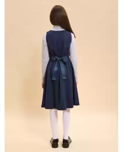 Школьный сарафан для маленьких принцесс. Изделие с округлым вырезом без застежки легко надевать и снимать, что так ценят самостоятельные леди. Завязка на бант из репсовой ленты сзади позволяет регулировать ширину и выбирать, что надеть под платье плотную водолазку или легкую блузу для торжественных случаев. Универсальные цвета не требуют частой стирки, а трикотаж на основе вискозы, обеспечит долгую практичную носку и простоту ухода.