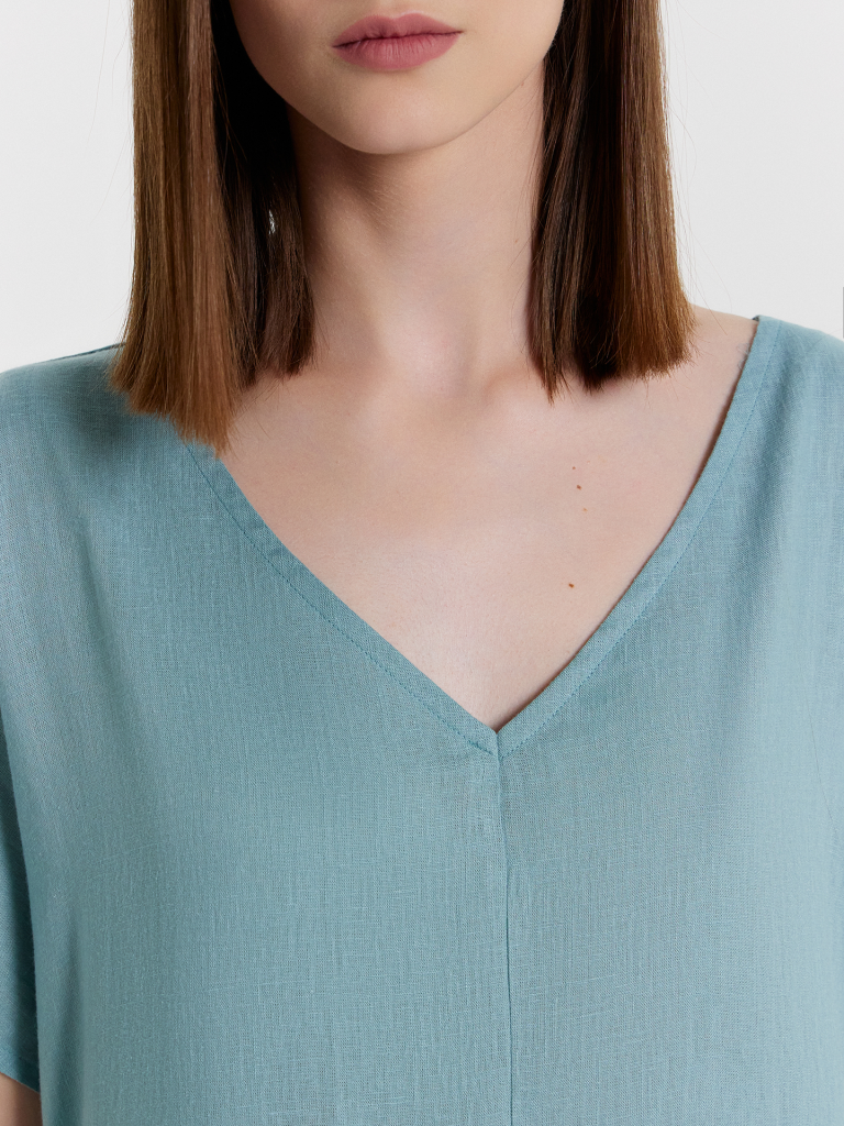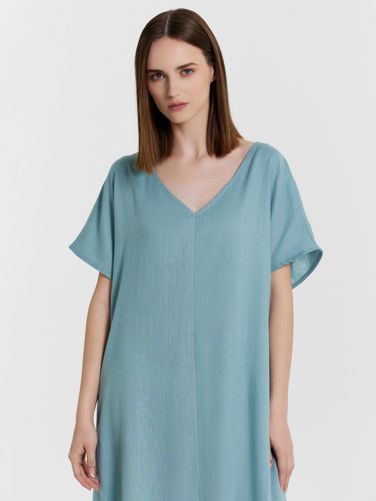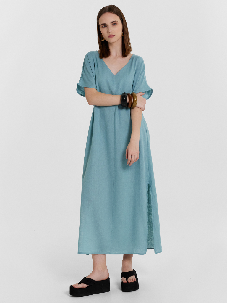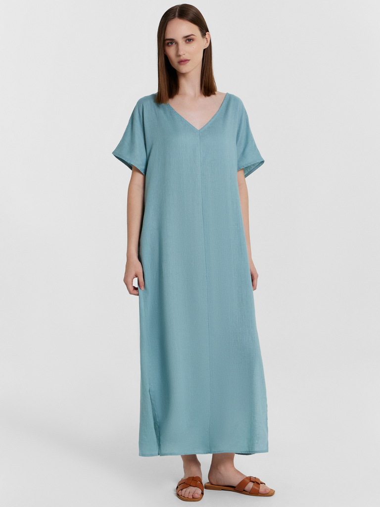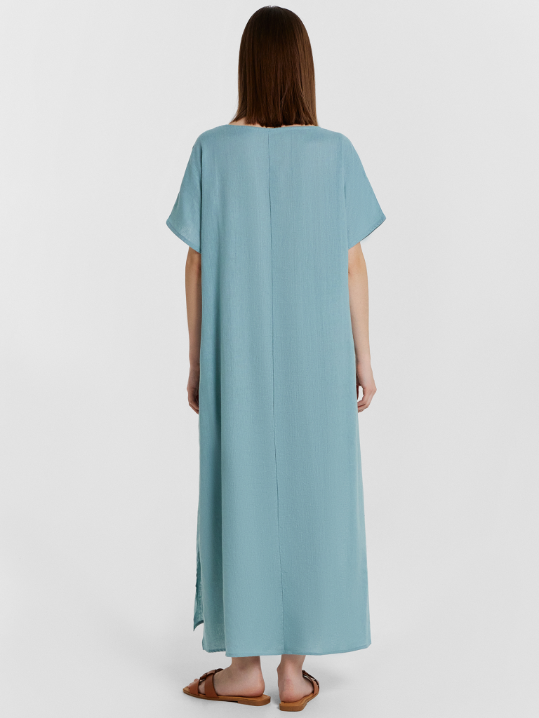 Дополните свой гардероб идеальным домашним платьем от Mark Formelle! Эта модель прямого силуэта с длиной макси и V-образной горловиной прекрасно сочетается с любым типом фигуры, создавая элегантный и утонченный образ. Короткие рукава и разрезы по боковым швам добавляют платью легкости и воздушности. Низ модели обработан швом в подгибку, что придает аккуратный и завершенный вид. Изделие выполнено из натурального сочетания льна и вискозы, что обеспечивает превосходный комфорт и дышащие свойства, идеальные для домашнего ношения. Добавьте это платье в свой домашний гардероб и наслаждайтесь комфортом и стилем каждый день. Рекомендуем!