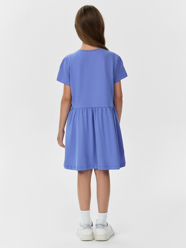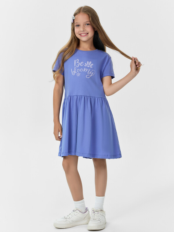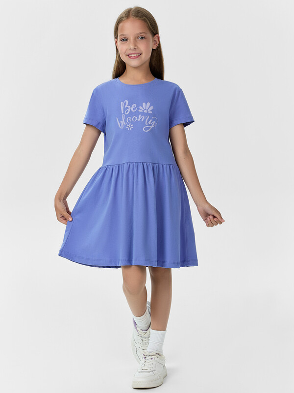 Стильное платье в сердечко, изготовленное из хлопковой трикотажной кулирки. Модель отрезная по линии талии, где проходят сборочки. Рукава короткий, с небольшими манжетами. Вырез круглый Длина платья выше колена. Отличный выбор для вашей девочки!