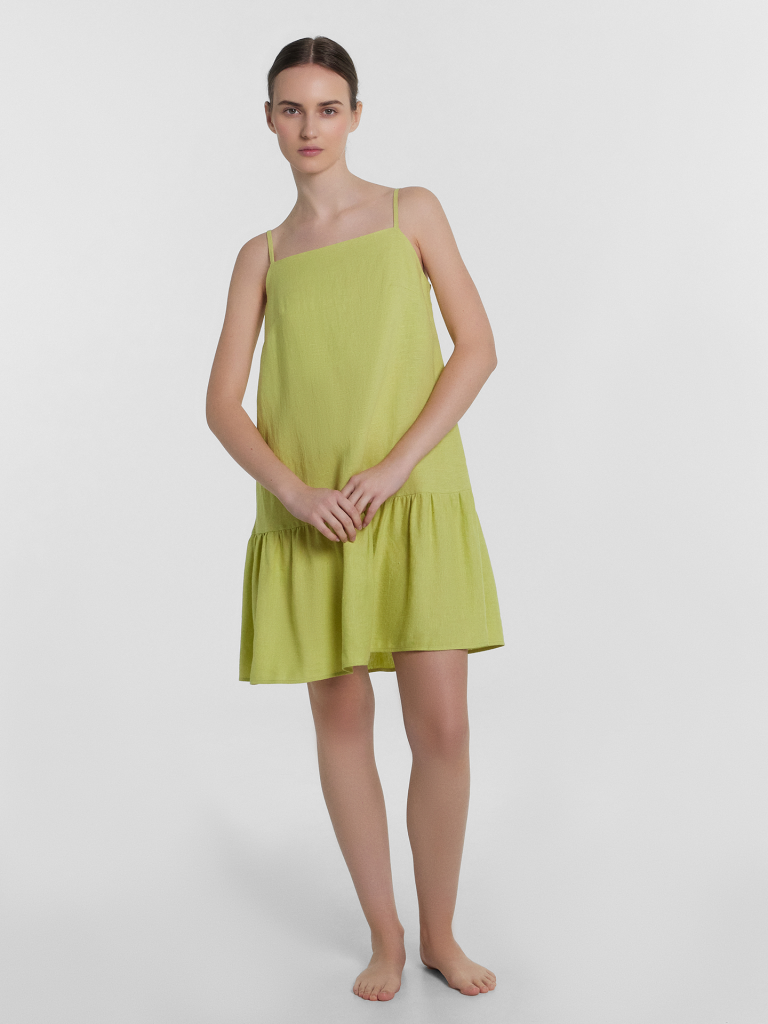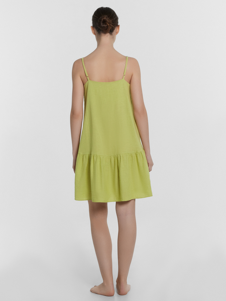 Женское домашнее платье — это сочетание легкости, комфорта и изящного дизайна. Модель свободного силуэта обеспечивает удобство и свободу движений, а регулируемые бретели позволяют индивидуально настроить посадку, создавая максимальный комфорт. Низ платья украшен притачной рюшей, добавляющей романтичности и утонченности общему облику. Низ рюши обработан в подгибку, что гарантирует аккуратность и долговечность изделия. Материалы, такие как лён и вискоза, обеспечивают приятные тактильные ощущения, воздухопроницаемость и натуральность, делая эту модель идеальным выбором для домашнего отдыха и расслабления. Это платье станет прекрасным дополнением вашего гардероба, сочетающим практичность и легкость. Рекомендуем!