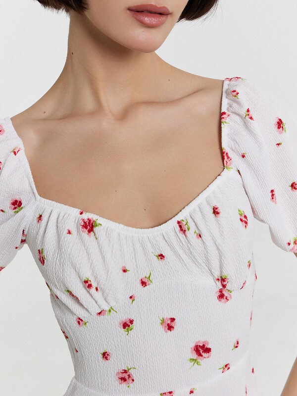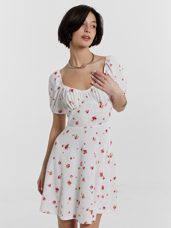 Это очаровательное короткое женское платье — воплощение нежности и элегантности! Модель с короткими рукавами и отрезным лифом со сборкой под грудью создает женственный силуэт, подчеркивая фигуру и придавая образу изысканность. Вырез горловины со сборкой на эластичную тесьму добавляет мягкости линиям и обеспечивает комфортную посадку. Срез горловины, верхний и нижний края обработаны швом вподгибку, что гарантирует аккуратный внешний вид и долгий срок службы. Сборка на эластичной тесьме создает воздушный эффект, добавляя романтические нотки в дизайн. Изделие выполнено из ткани рошель, которая отличается легкостью и приятными тактильными свойствами, делая платье идеальным для летнего гардероба. Это идеальный выбор для прогулок, отдыха и особых случаев, когда хочется добавить образу утонченности! Каждая деталь продумана для того, чтобы подчеркнуть вашу естественную грацию и комфорт. Отличный вариант для тех, кто ценит стиль и изящество!