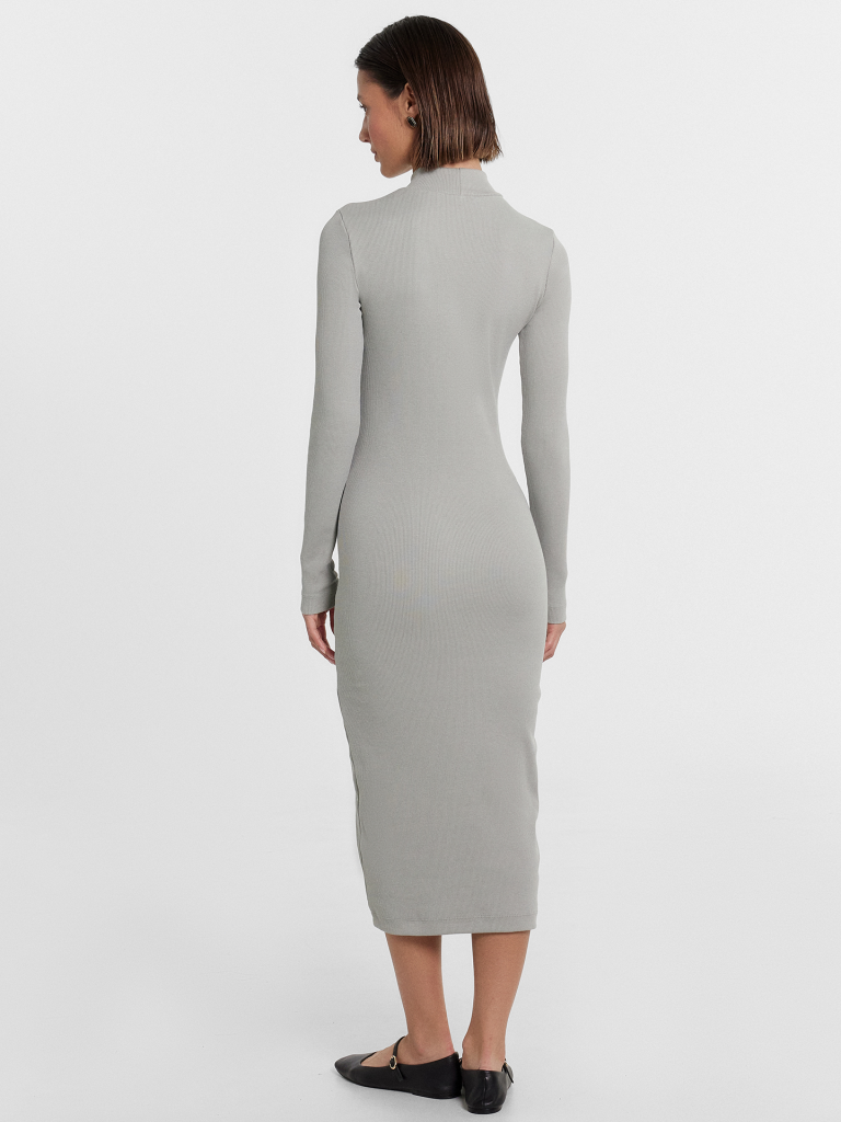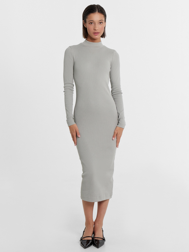 Однотонное платье женское с длинными рукавами, прилегающего силуэта из высококачественного хлопка в рубчик. Вырез круглый, с воротником-стойкой. Рукава длинные, облегающие. Длина модели чуть ниже колена. Отличное базовое платье, которое станет основой вашего стильного образа. Такое платье точно не будет ждать своего часа на полке в шкафу. В осенне-зимний период так хочется надеть что-то максимально комфортное и уютное - эта модель именно такой вариант. Облегающее платье не стесняет движений, очень комфортное в носке. Идеально подойдет для прогулок, встреч с друзьями, свидания и похода в кино. Рекомендуем!