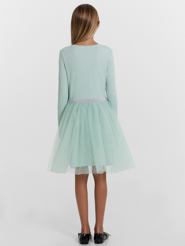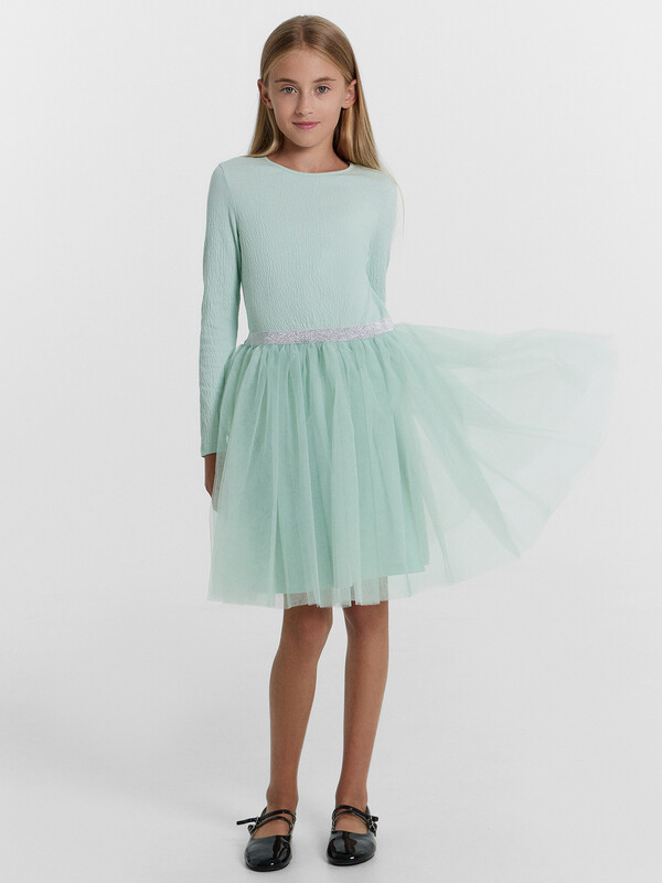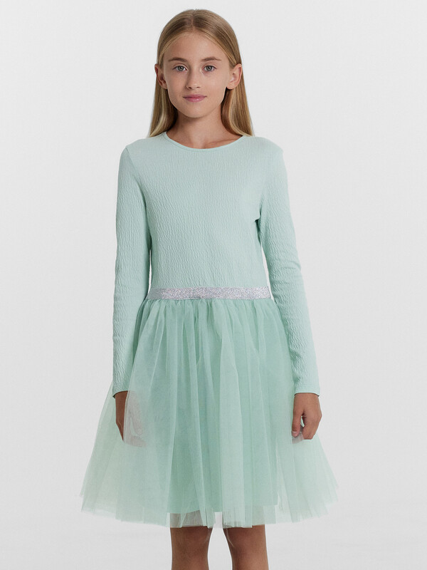 Очаровательное платье для девочек от Mark Formelle. Модель полуприлегающего силуэта с отрезной фатиновой юбкой. Длина выше колена. Горловина круглая. Рукав длинный. Юбка трехслойная на сборке, верхние два слоя из сеточки, подкладка из трикотажного кулирного полотна. Блестящий пояс из жаккардовой тесьмы. Ваша маленькая принцесса будет сиять в этом волшебном платье на любом мероприятии! Свободный крой позволит ей легко двигаться и наслаждаться каждым мгновением, а разнообразие размеров и цветов даст возможность выбрать идеальный вариант, который подчеркнет ее неповторимый стиль. Рекомендуем!