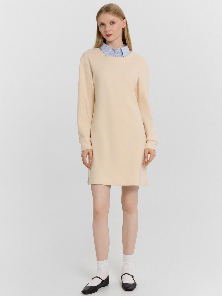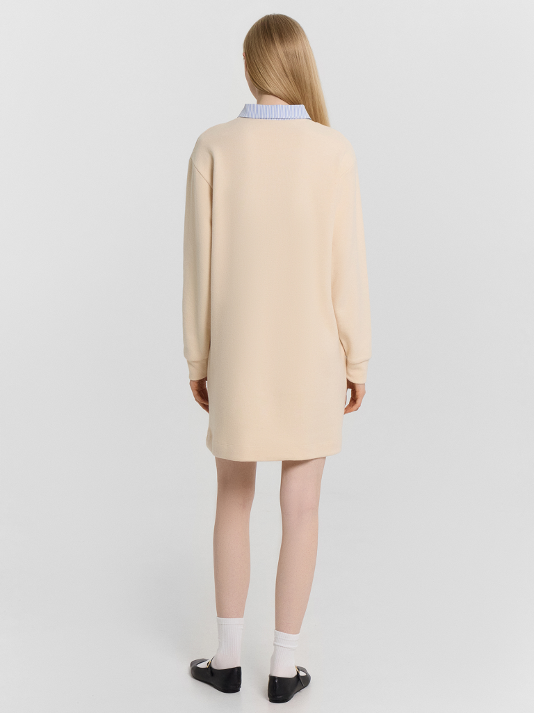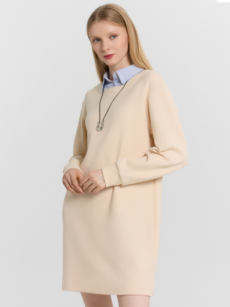 Элегантное женское платье прямого силуэта из трикотажного материала селаник — идеальный выбор для комфортного и стильного образа. Легкая и приятная на ощупь ткань обеспечивает удобство в носке, а продуманный дизайн подчеркивает изящество каждой детали. Округлая горловина украшена рубашечным воротником с отрезной стойкой из поплина, добавляя образу классический акцент. Застежка на пуговицу придает элегантность, а слегка спущенное плечо и углубленная пройма создают комфортную посадку. Длинные рукава с манжетами делают платье универсальным вариантом для прохладной погоды. Длина чуть выше колена позволяет легко сочетать его с ботильонами, сапогами или классическими туфлями. Отличный выбор для деловых встреч, прогулок, работы и особых случаев — это платье сочетает удобство, стиль и безупречное качество!