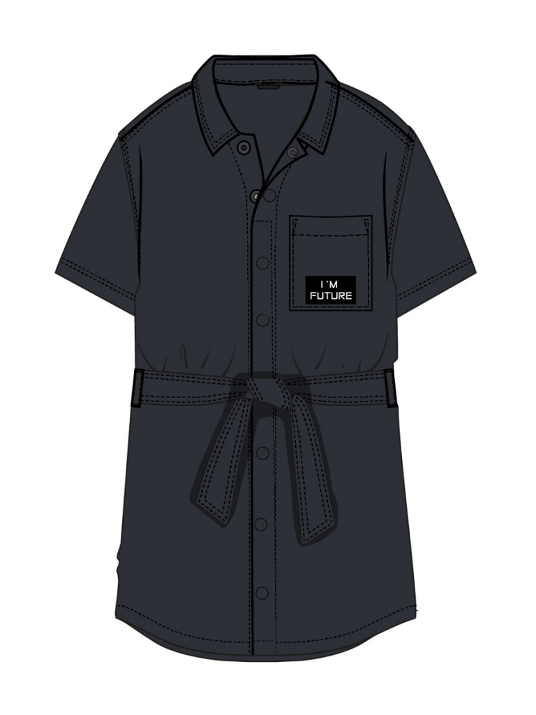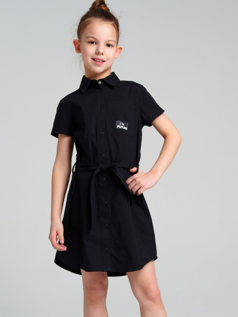 Платье-рубашка из поплина. Застёжка на кнопки. По талии пояс.