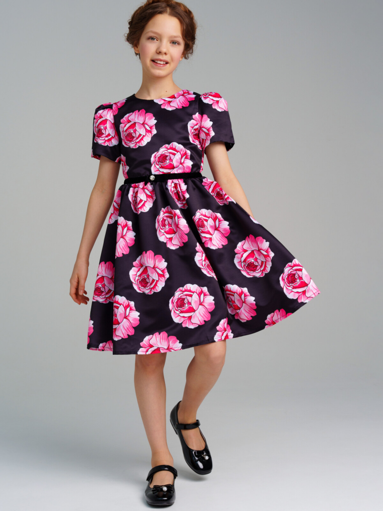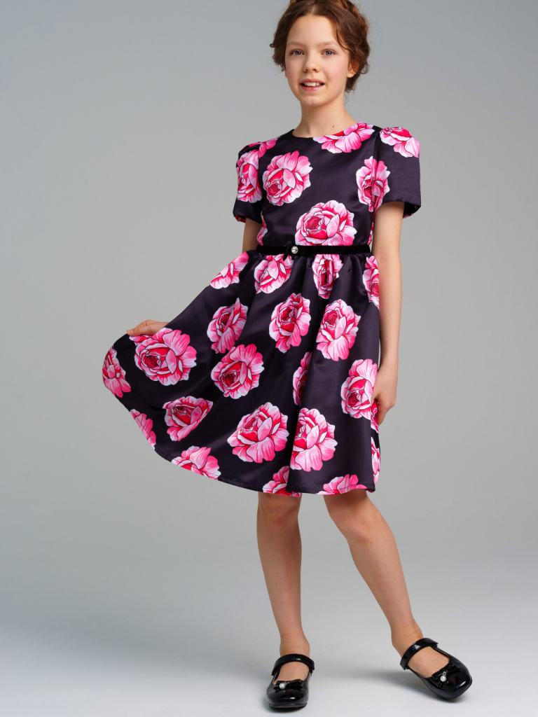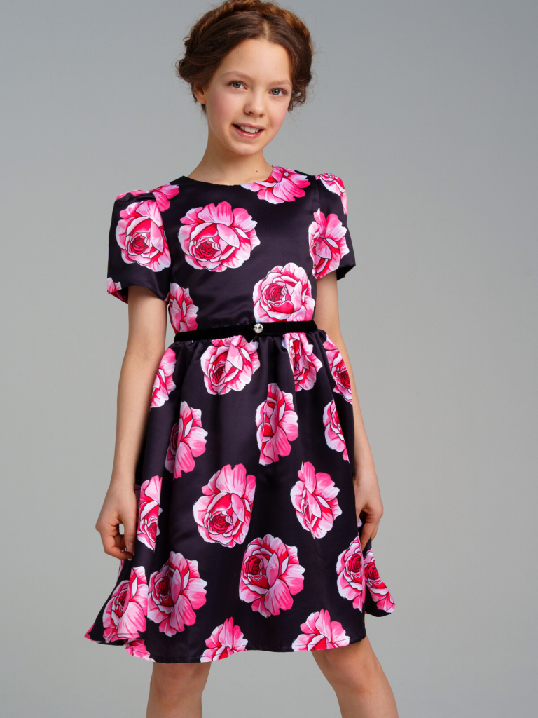 > Платье текстильное для девочек черный,разноцветный