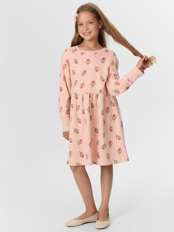 Платье тюльпаны на розовом