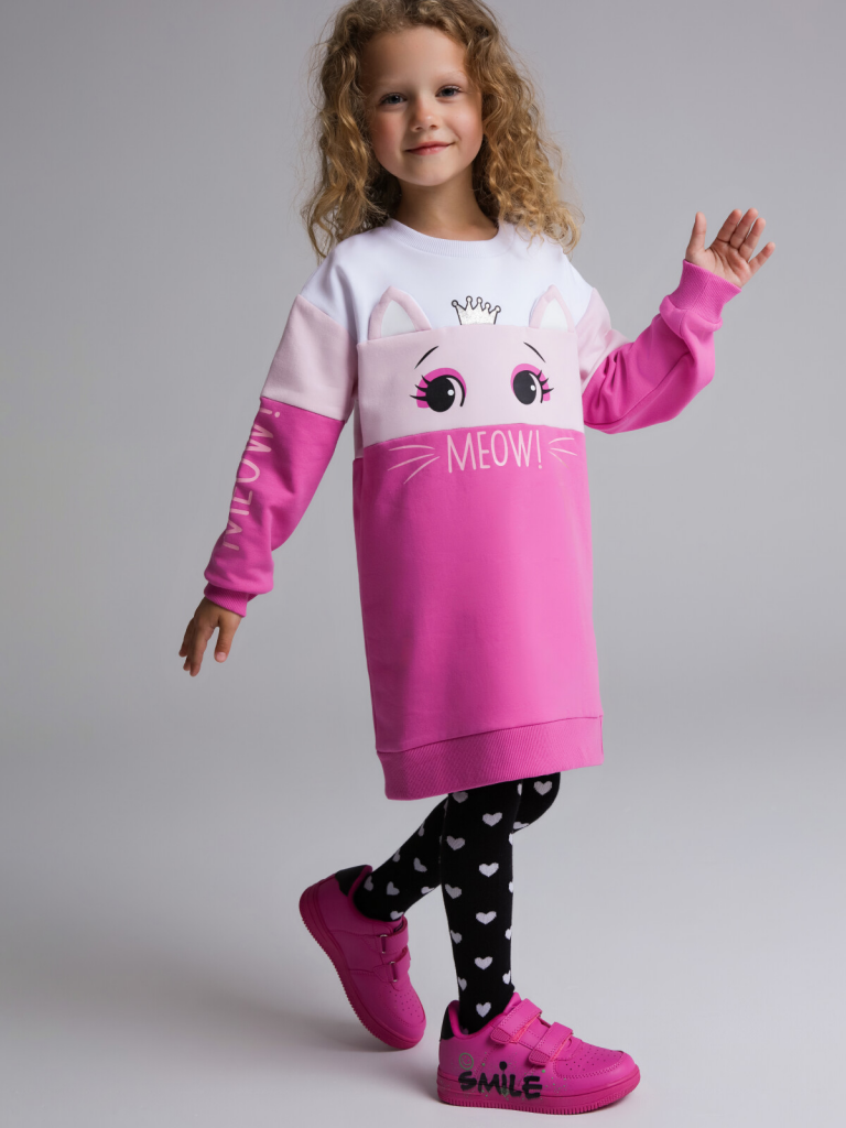 > Платье трикотажное для девочек белый,светло-розовый,розовый