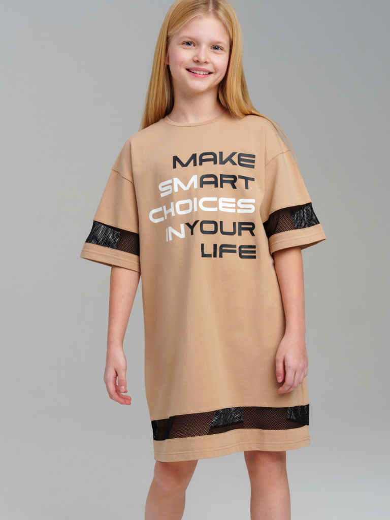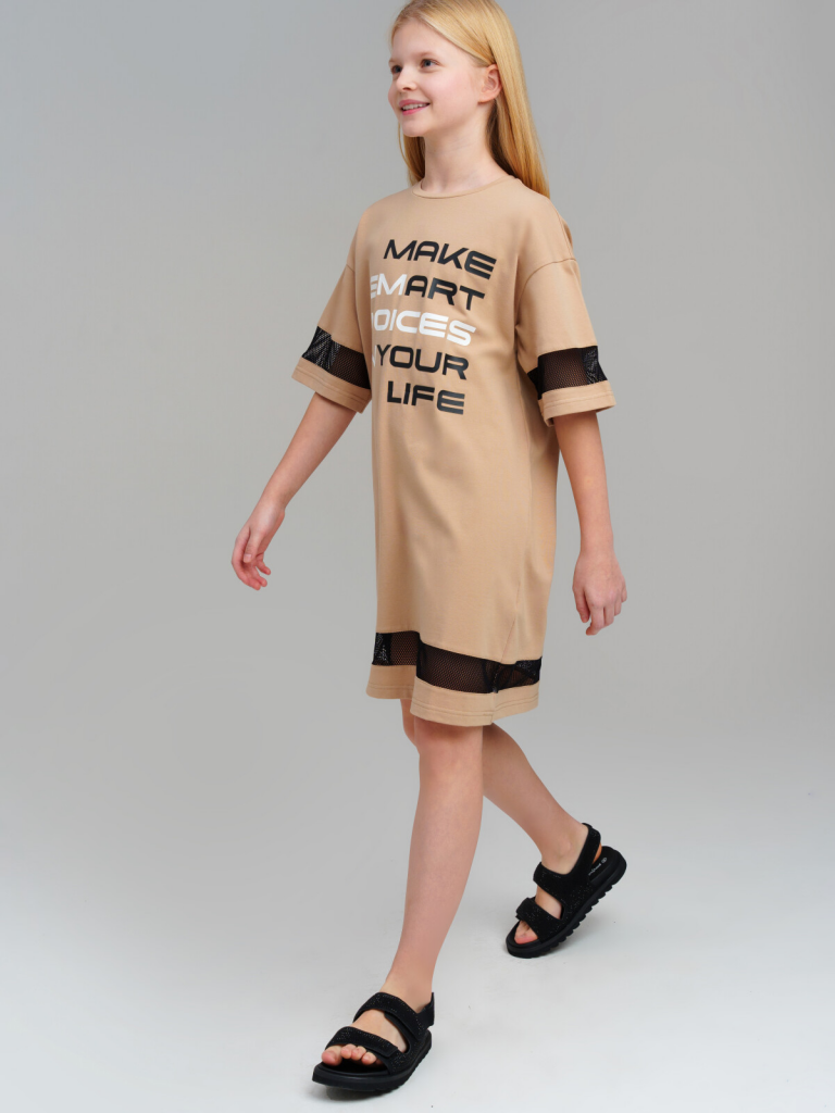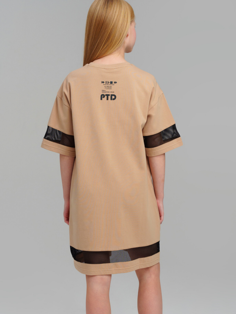 Платье для девочки подростка. Оверсайз платье-футболка из качественного и приятного на ощупь трикотажа джерси. Высокое содержание хлопка 95%. Благодаря наличию эластана в составе ткани изделие проще в уходе и держит форму. Декор из сетки. Модель выполнена из качественного и приятного на ощупь трикотажа.