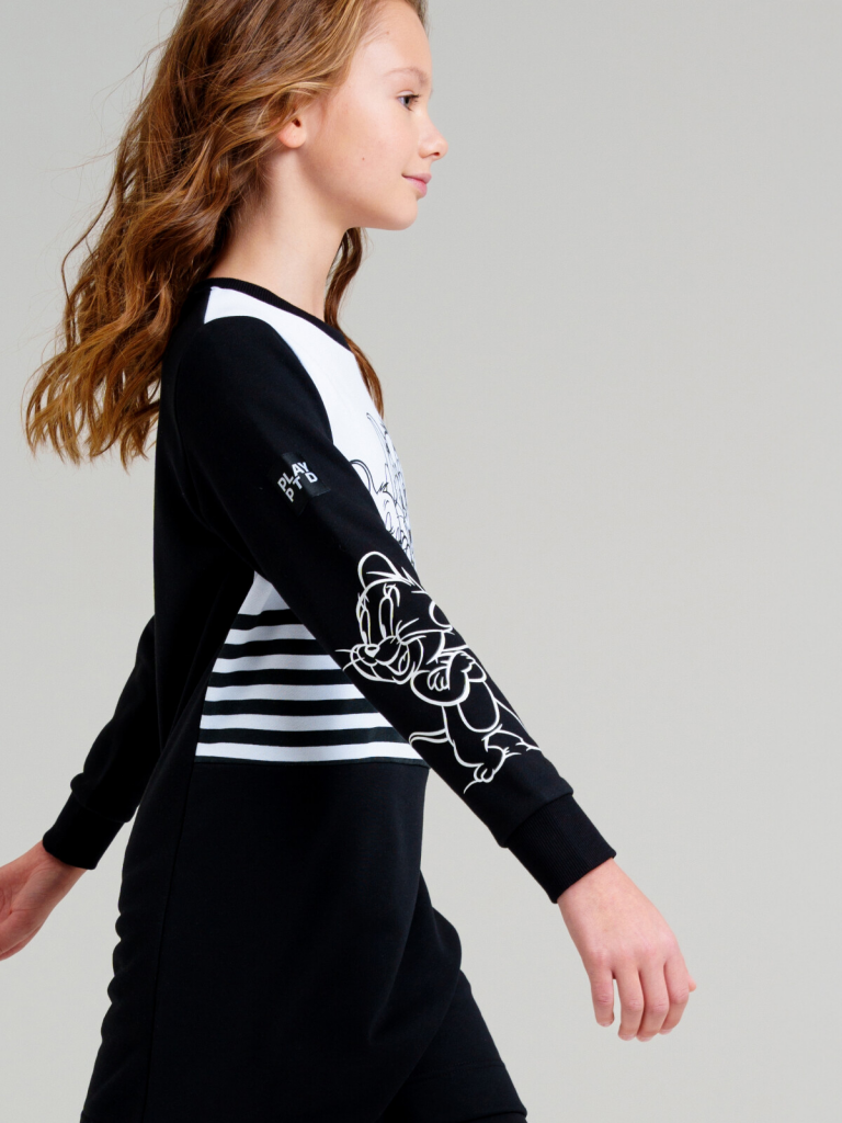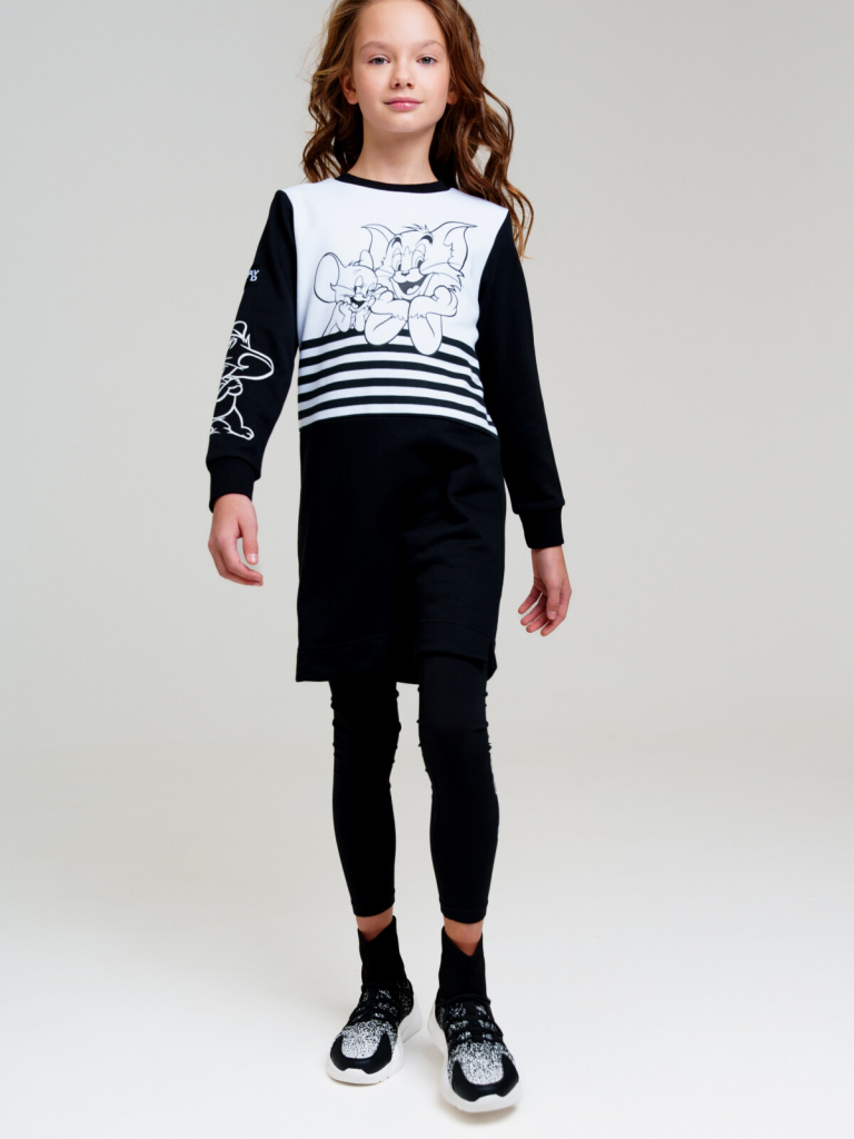 Платье для девочки подростка. Высокое содержание хлопка. Горловина и манжеты в эластичный рубчик. Модель выполнена из качественного и приятного на ощупь трикотажа.
