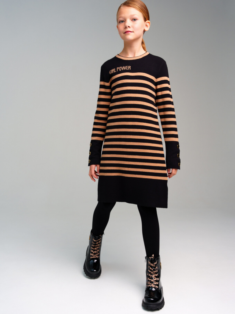 Платье для девочки подростка. Нарядное платье из вязаного трикотажа с содержанием вискозы. Модель из капсульной коллекции BLACK CHIC (БЛЭК ШИК). Соберите полный образ в едином стиле!
