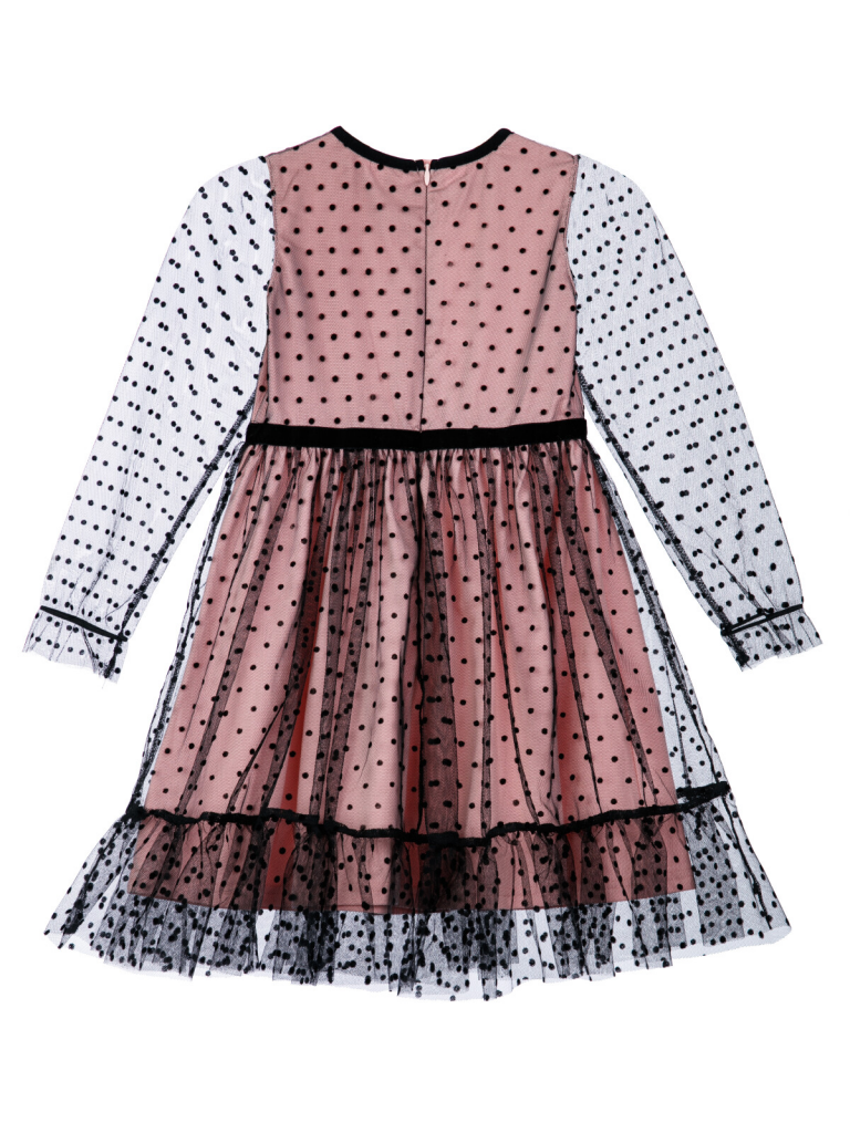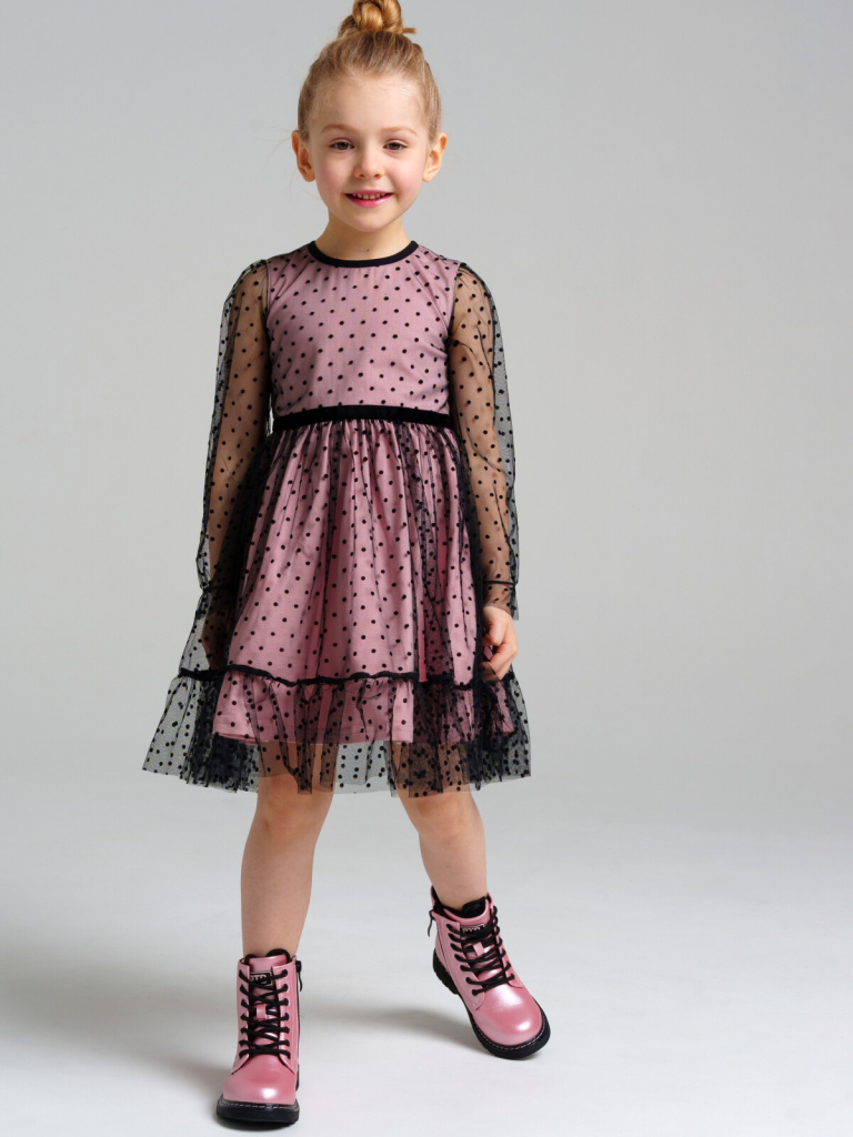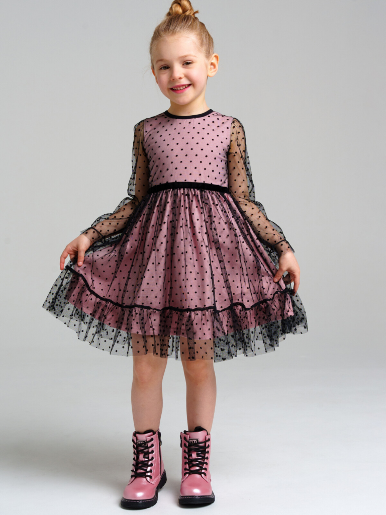 Платье трикотажное. Верх платья из мягкой сетки. Подкладка из трикотажа с высоким содержанием хлопка 95%. Благодаря наличию 5% эластана в составе ткани изделие держит форму. Застежка сзади на потайную молнию.