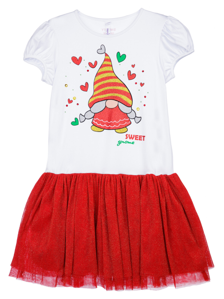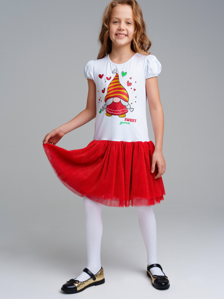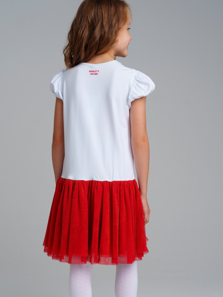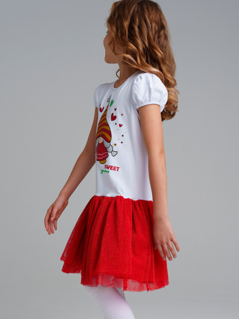 Платье трикотажное с юбкой из мягкой сетки. Верх платья из трикотажа с высоким содержанием хлопка 95%. Благодаря наличию 5% эластана в составе ткани изделие держит форму.