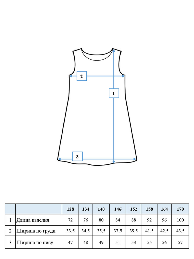 Сарафан из качественного и приятного на ощупь трикотажа. Высокое содержание хлопка. Благодаря наличию 5% эластана в составе ткани изделие держит форму и меньше мнется.