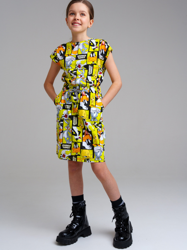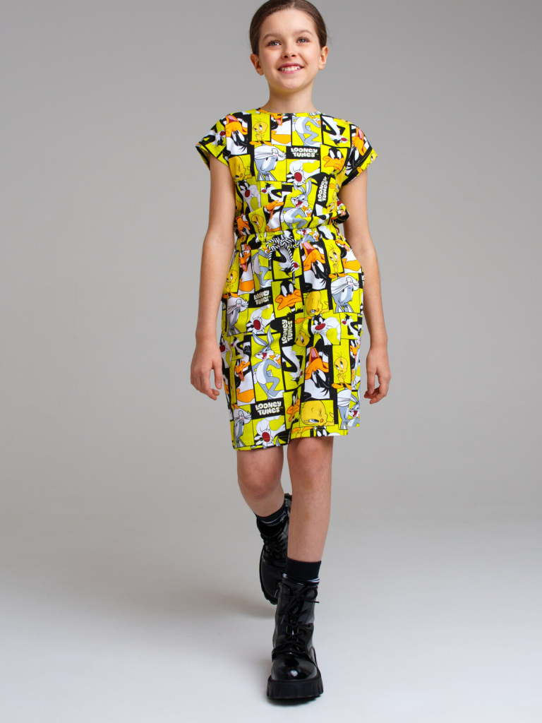 Платье из качественного и приятного на ощупь трикотажа джерси. Высокое содержание хлопка 95%. Благодаря наличию эластана в составе ткани изделие проще в уходе и держит форму. По талии утяжка шнурком. Функциональные карманы.