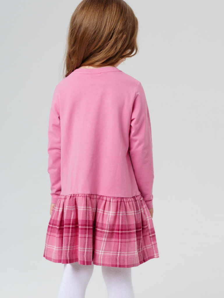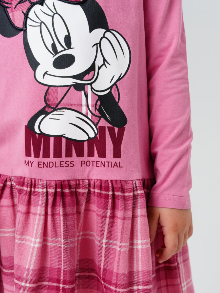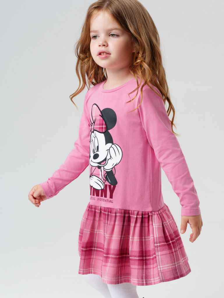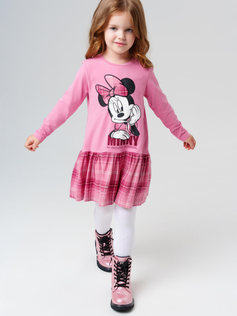 Детское трикотажное платье для девочки от PlayToday с принтом Минни Маус — стильное и удобное решение для сада, праздников и прогулок. Верх выполнен из мягкого хлопкового трикотажа с эластаном, низ — из клетчатой фланели, что создаёт эффектный контраст и делает образ более нарядным.Преимущества модели:+ хлопковый трикотаж с эластаном — дышащий материал, комфортный для кожи ребенка+ клетчатая юбка из мягкой фланели — трендовый элемент и уютный вариант для прохладного сезона+ застёжка на кнопки — легко надевать даже самым маленьким девочкам+ яркий принт с Минни Маус — любимый персонаж, который дарит настроение+ удобный крой — не сковывает движений, подходит для школы и повседневных делКогда и как носить:Такое платье отлично подойдёт для детского сада, школы, прогулок и праздников. С колготками и ботинками получится удобный повседневный образ, а с балетками или туфельками — нарядный комплект.Совет по стилю:Сочетайте платье с плотными колготками и кардиганом PlayToday для прохладных дней.Размеры: 98, 104, 110, 116, 122 см подходит для девочек от 3 до 7 лет, как для сада, так и для младшей школы.Модное трикотажное платье для девочки с принтом Минни Маус от PlayToday — яркий образ для школы, сада и прогулок.