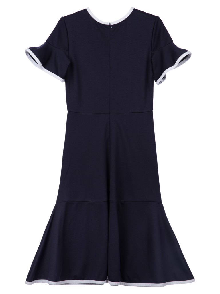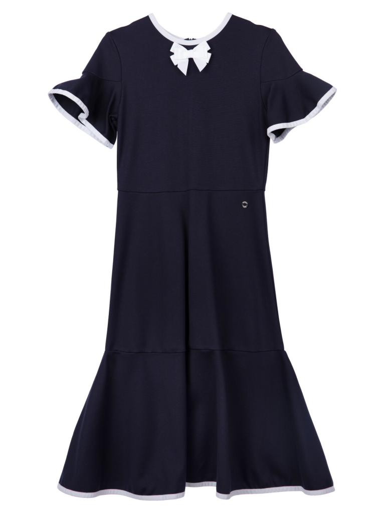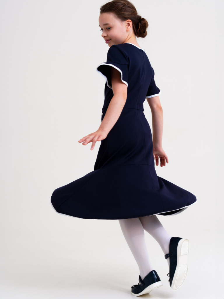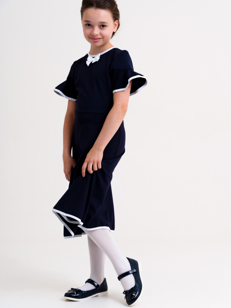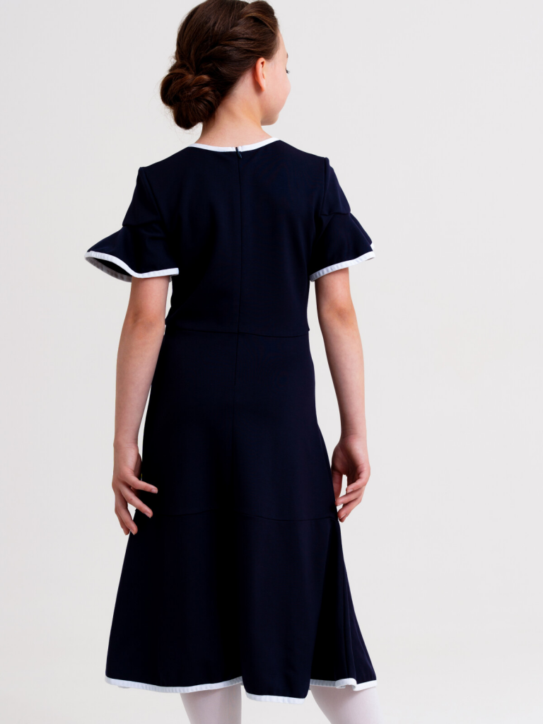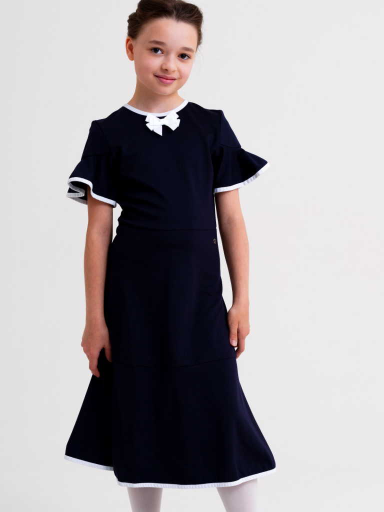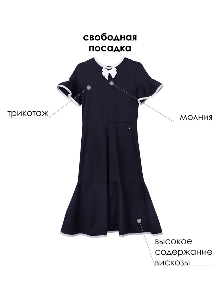 Школьное платье для девочки подростка. Синее платье свободного силуэта из трикотажа идеально в школу. Платье для школы выполнено из ткани с высоким содержанием вискозы, что обеспечивает максимальный комфорт для школьницы во время занятий. Вискоза отличается высокой гигроскопичностью - она впитывает влагу и отлично сохраняет тепло. Платье имеет застежку на молнию.