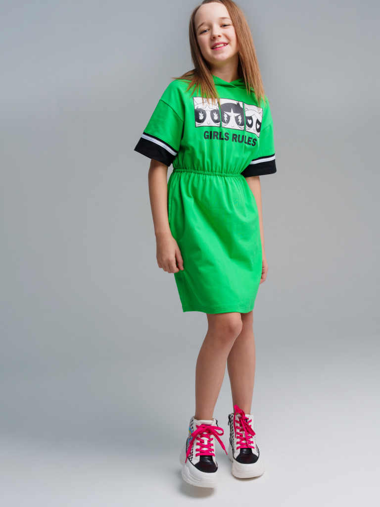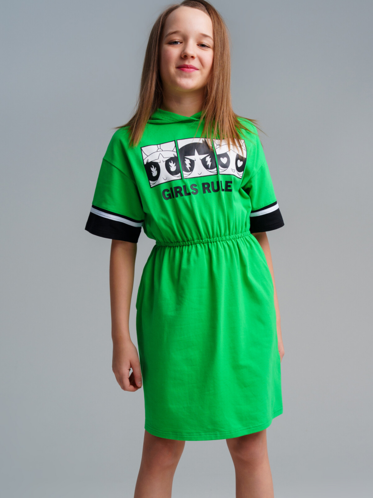 Платье трикотажное для девочек зеленый,белый,черный