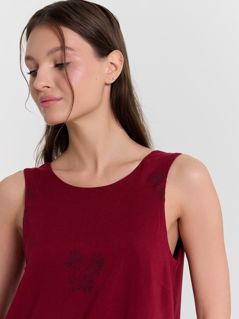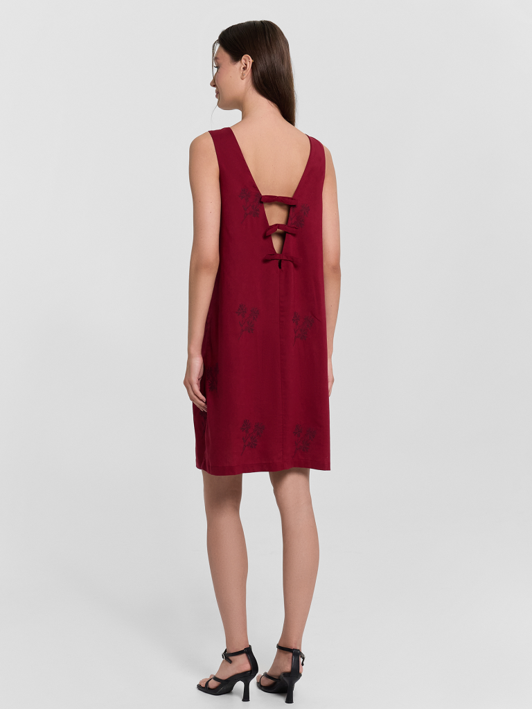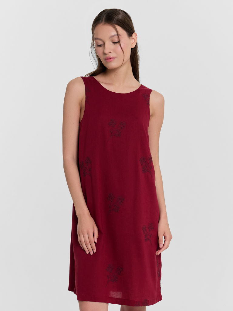 Это стильное платье A-силуэта — идеальный выбор для тех, кто ценит элегантность и комфорт. Мини-длина подчеркивает легкость образа, а круглая горловина и V-образный вырез на спинке делают модель более изящной. Декоративные бантики на спинке делают модель особенной, добавляя нотку романтичности. Главное преимущество этого платья — натуральные материалы. Вискоза и лен обеспечивают отличную воздухопроницаемость, позволяя коже дышать даже в жаркую погоду. Лен придает ткани прочность и долговечность, а вискоза делает ее мягкой и приятной на ощупь. Благодаря этим свойствам платье остается комфортным в течение всего дня и сохраняет аккуратный вид после множества стирок.