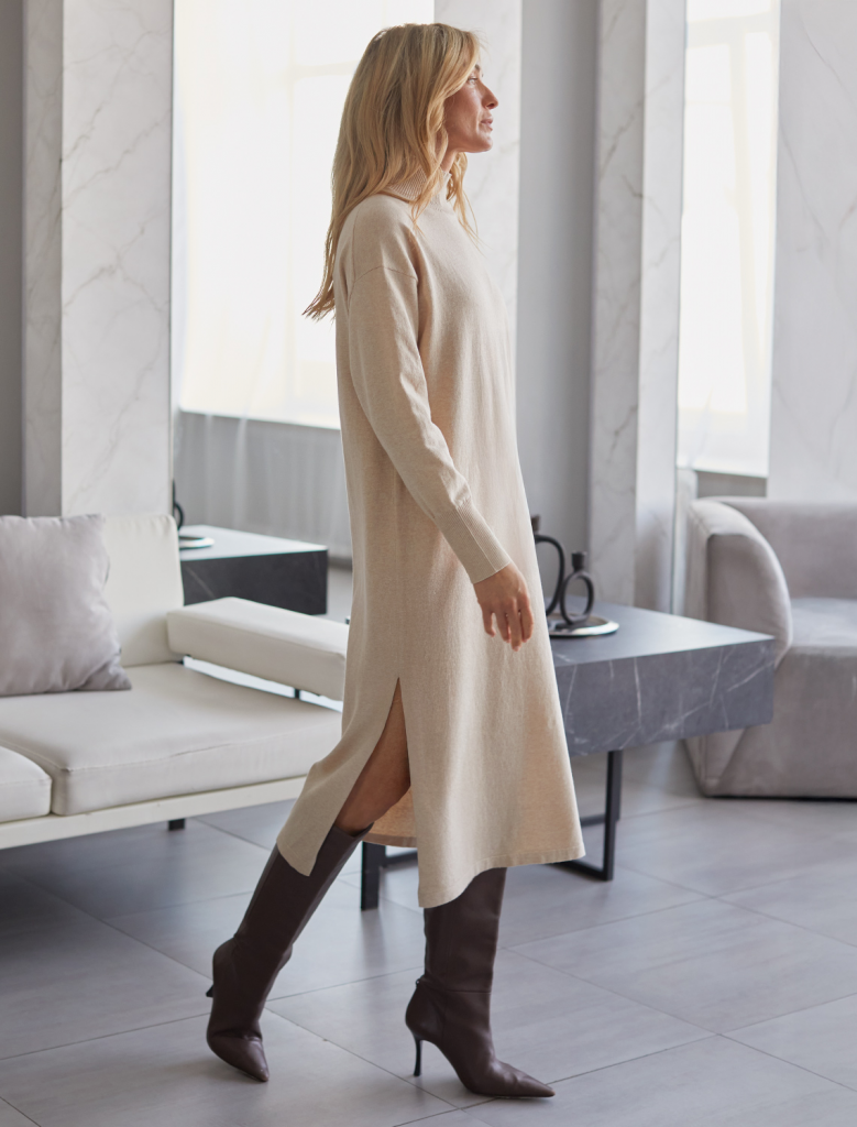 Платье вязаное женское бежевый меланж