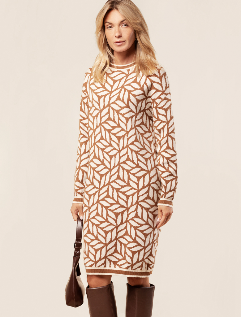 Платье жаккардовой вязки выполнено из мягкой пряжи на основе вискозы с добавлением кашемира. Модель свободного силуэта подходит для любой фигуры. Нежная пряжа очень комфортно ощущается на теле, сохраняя оптимальное тепло при этом не перегревая. Совет стилиста: жаккардовое платье отличная инвестиция в базовый гардероб, которая поможет создать дорогие образы. Носите с высокими сапогами удлиняя силуэт или плотными колготками.