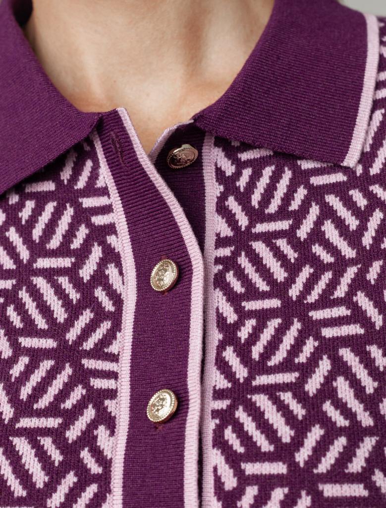 Платье жаккардовой вязки выполнено из нежной пряжи на основе вискозы с добавлением кашемира. Модель прямого силуэта с застежкой планкой как у поло. Фигурные золотистые пуговицы вносят изысканности и роскоши. Изделие приятно ощущается на теле и поддерживает комфортный микроклимат. Сочетается в комплекте total-look с жакетом D31.150