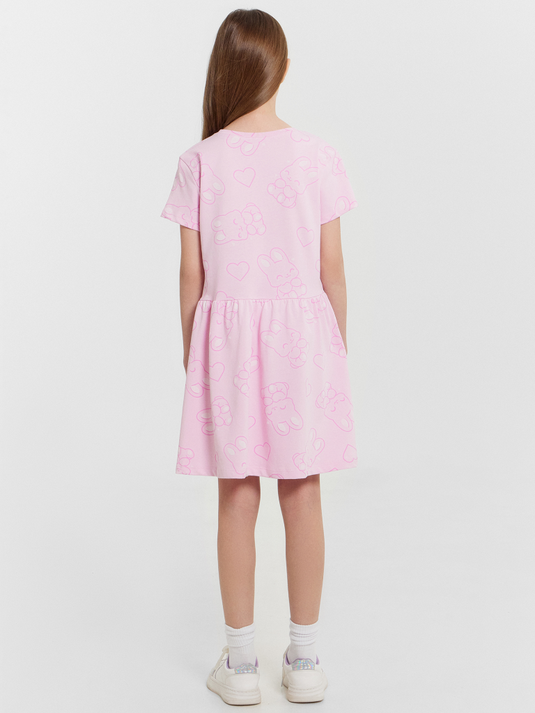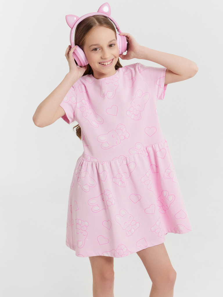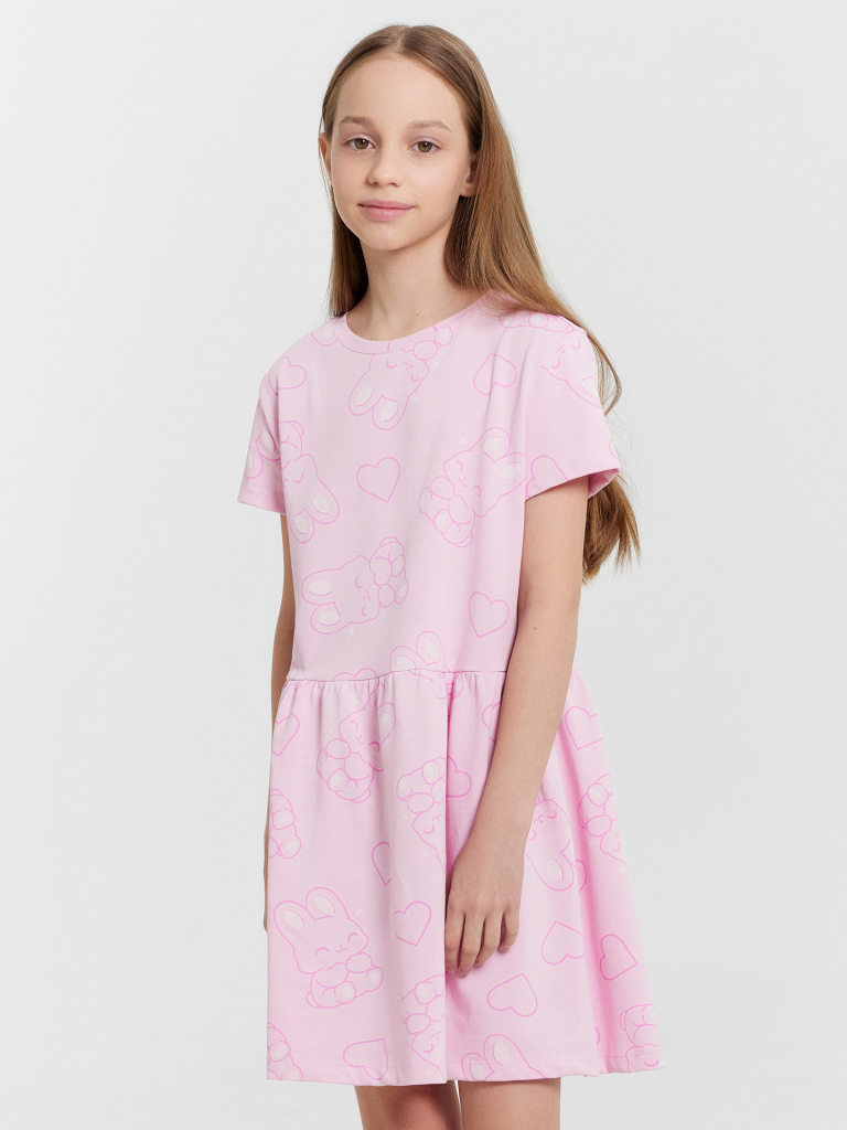 Повседневное хлопковое платье для девочек. Модель акцентирует внимание на талии. Рукава короткие, вырез круглый, не глубокий. Длина платья выше колена. Стильно!