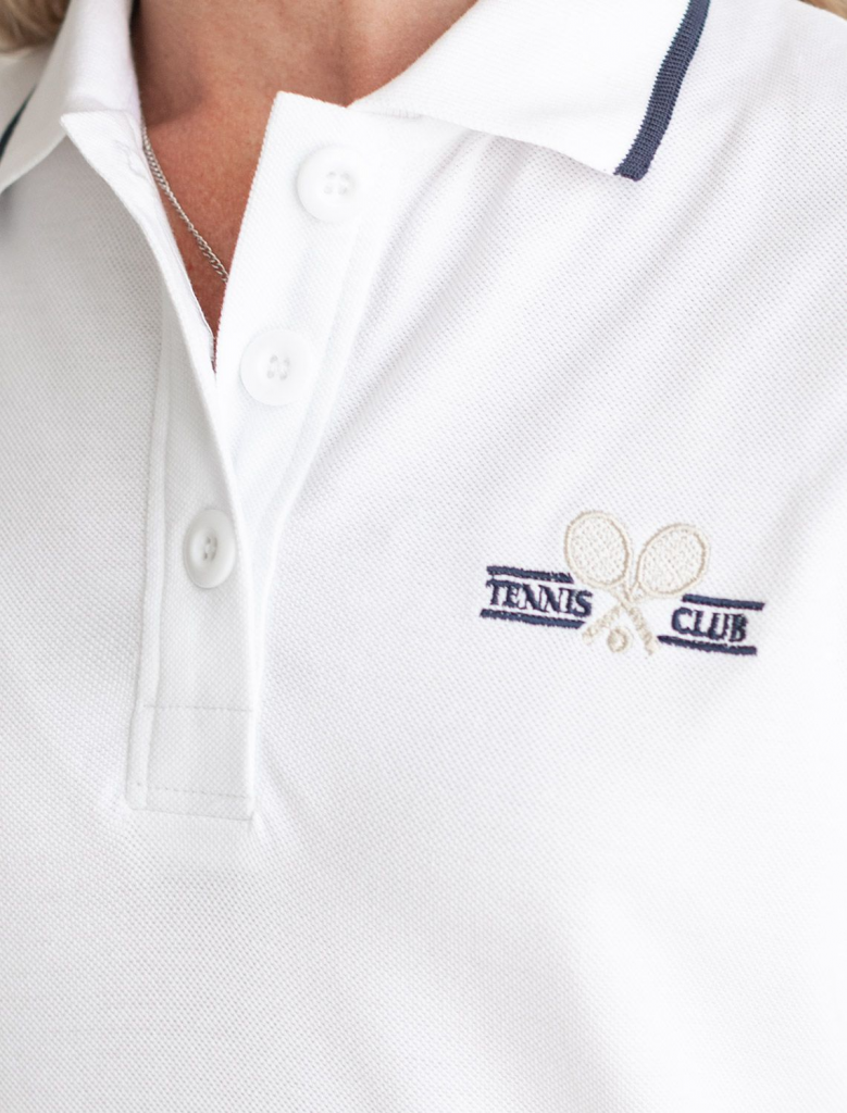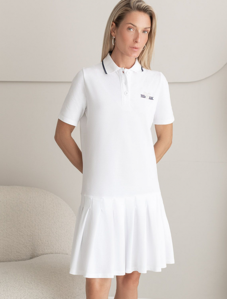 Платье-поло выполнено из фактурного трикотажа. Перевод принта: Теннисный клубИдеальный выбор для тех, кто ценит комфорт и стиль. Изделие обеспечивает свободу движений и сохраняет свою форму в течение долгого времени. Классический крой теннисного платья подчеркивает фигуру и женственность. Практичная длина позволяет свободно двигаться даже при активных движениях. Подходит для спорта, дама и повседневного аутфита.