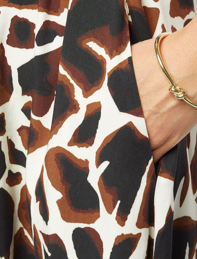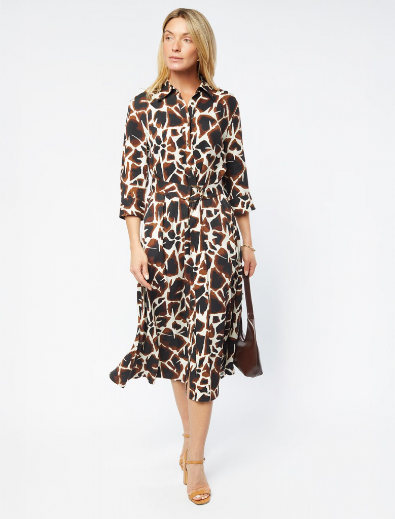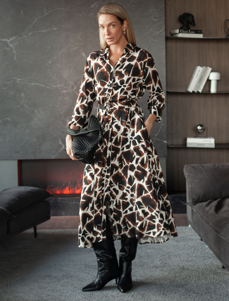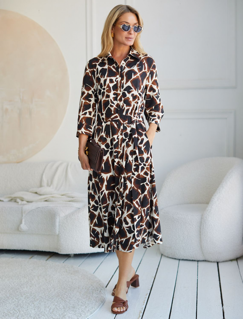 Платье выполнено из 100% вискозного твила. В комплект входит пояс из основного полотна с золотистой пряжкой. Модель дополнена карманами. Ткань приятно охлаждает кожу в жаркое время года и изящно струится при каждом движении.