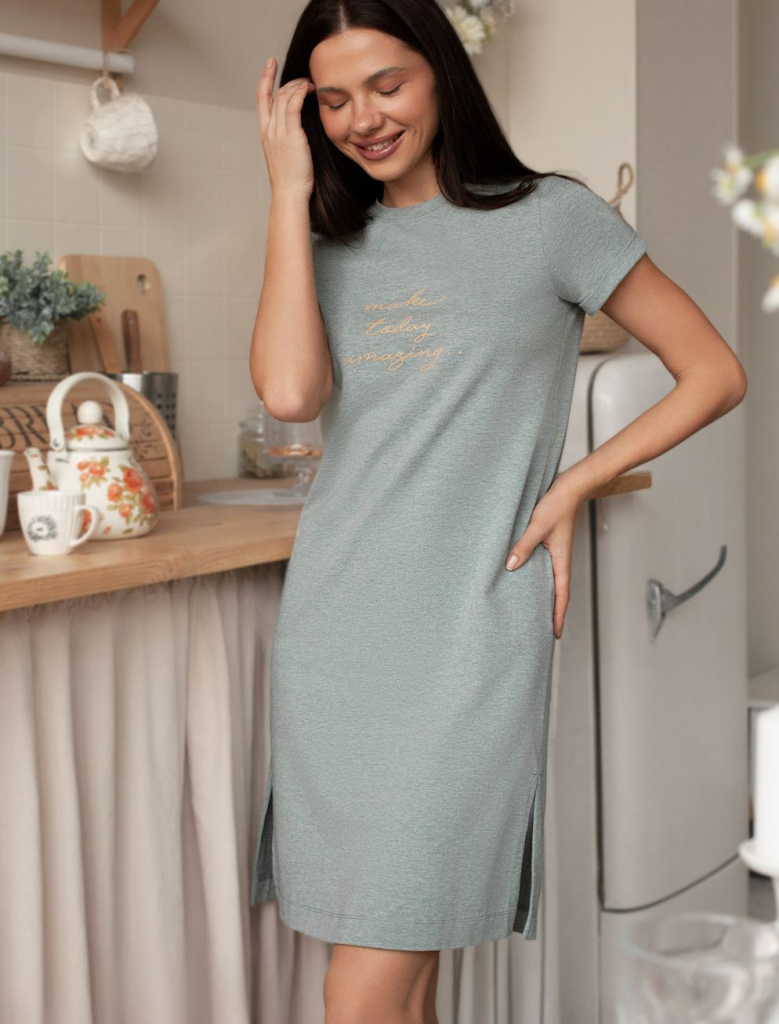 Домашнее платье выполнено из премиального хлопка с авторским принтом. Make today amazing - сделай этот день чудесным. Изделие приятно ощущается на теле, а разрезы по бокам обеспечивают удобную посадку не сковывая движений. Наличие эластана в составе изделия способствует формоустойчивости и меньшей сминаемости.
