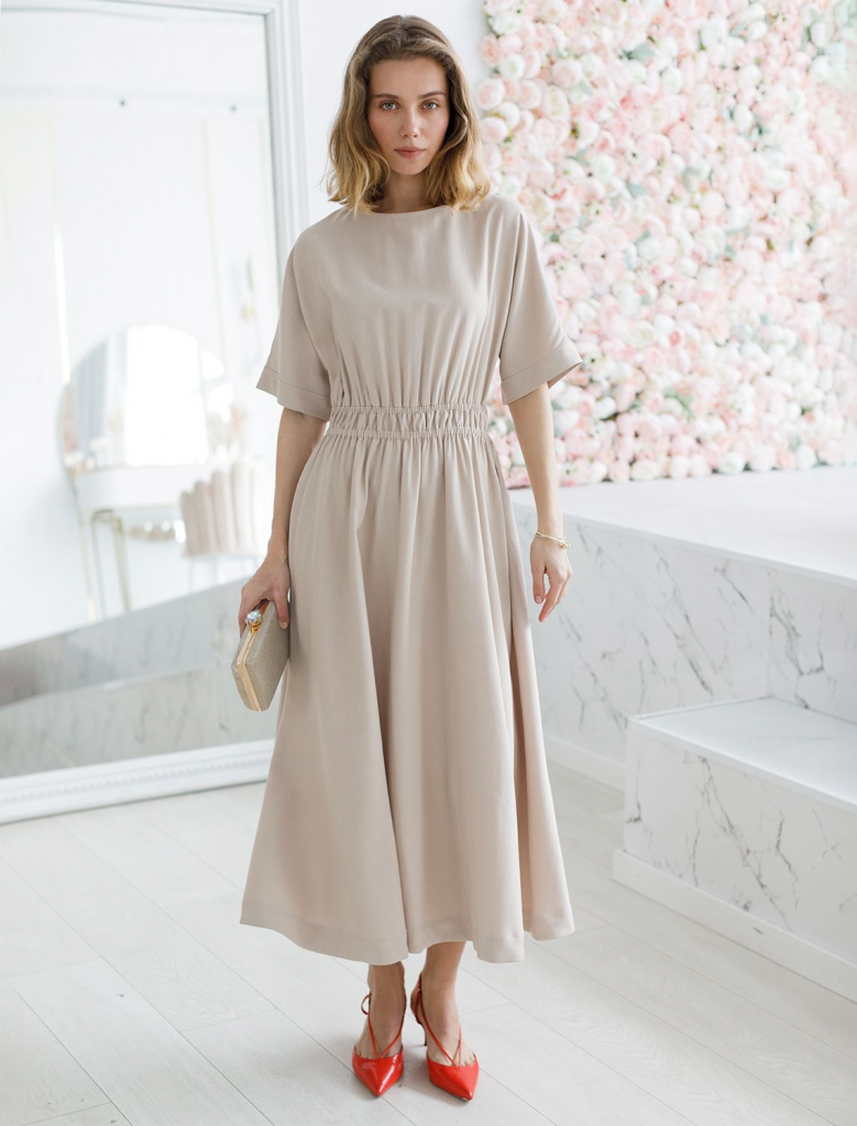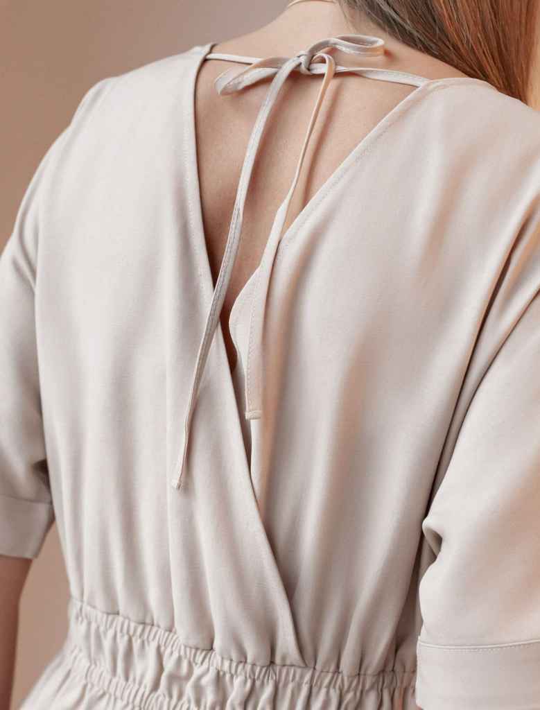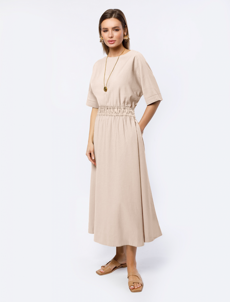 Платье выполнено из плотного лиоцелла. Модель с юбкой полусолнце и карманами дополнена эластичным поясом на талии. На спинке изделия вырез на запАх с лентами из основного полотна. Ткань хорошо держит форму, плавно драпируется и не просвечивает. В теплое время года приятно охлаждает кожу. Добавление синтетических волокон в составе изделия, предотвращает сминаемость и поддерживает формоустойчивость.