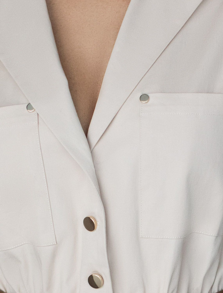 Платье в стиле сафари выполнено из хлопкового твила. Изделие дополнено тонким ремешком из эко-кожи, боковыми и нагрудными карманами, подворотами на рукавах. Застежка на пуговицы спереди. Благодаря наличию эластана в составе изделие сохранит свой безупречный внешний вид в течение долгого времени. Обладает высокой воздухопроницаемостью, в платье будет комфортно даже в жаркое время года.