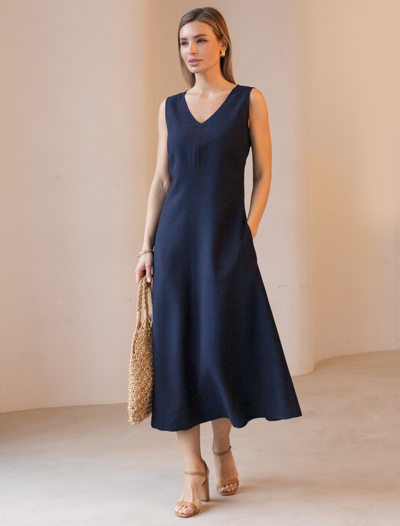 Платье с V-вырезом выполнено из плотного лиоцелла. Лаконичная модель с открытыми плечами и слегка расклешённым низом. Ткань изделия отлично держит форму, плавно драпируется и не просвечивает. В теплое время года приятно охлаждает кожу. Добавление синтетических волокон в составе изделия, предотвращает сминаемостьи поддерживает формоустойчивость.