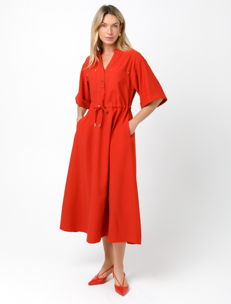 Платье-рубашка выполнено из плотного лиоцелла. Модель дополнена карманами и регулируемым поясом на талии. Романтичная пышная юбка великолепно драпируется и струится по ногам. В теплое время года ткань приятно охлаждает кожу. Добавление синтетических волокон в составе изделия, предотвращает сминаемостьи поддерживает формоустойчивость.