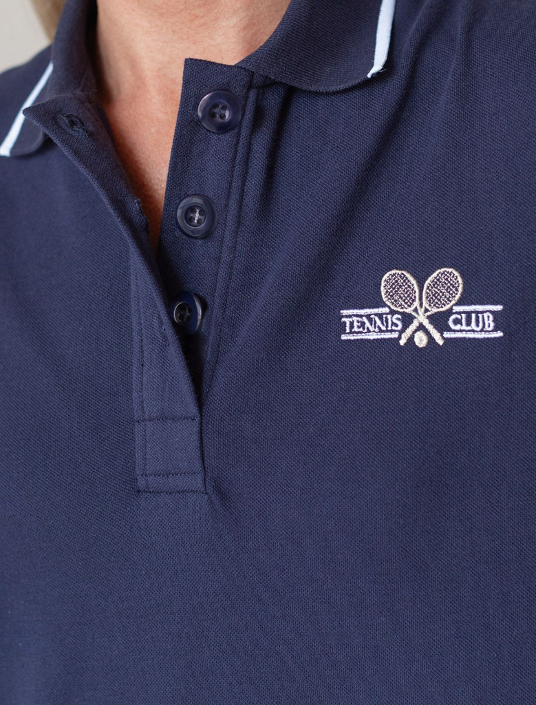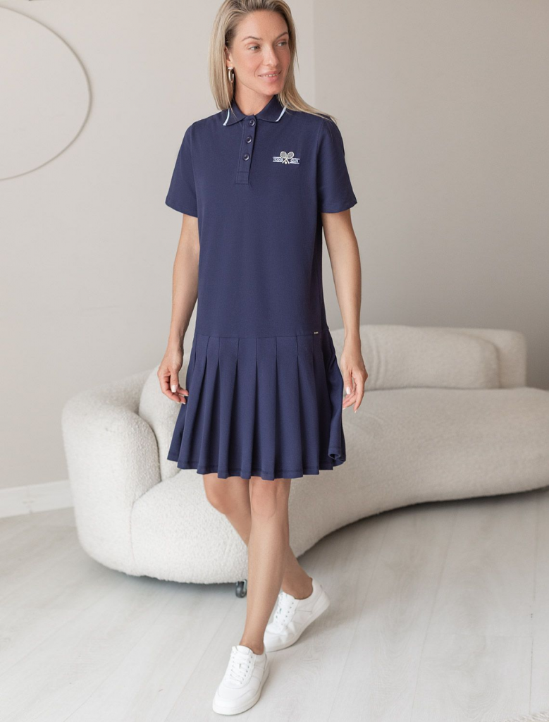 Платье-поло выполнено из фактурного трикотажа. Перевод принта: Теннисный клубИдеальный выбор для тех, кто ценит комфорт и стиль. Изделие обеспечивает свободу движений и сохраняет свою форму в течение долгого времени. Классический крой теннисного платья подчеркивает фигуру и женственность. Практичная длина позволяет свободно двигаться даже при активных движениях. Подходит для спорта, дама и повседневного аутфита.