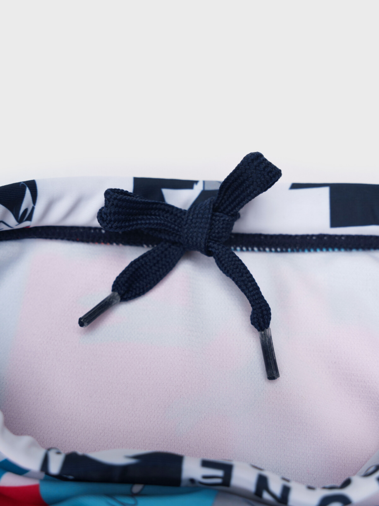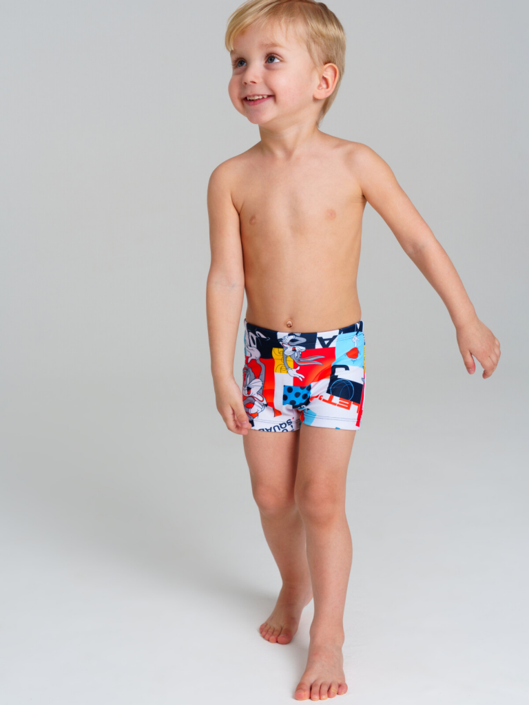 Плавки-шорты детские для мальчика. Плавки для пляжа и бассейна выполнены из быстросохнущего материала. Утяжка пояса шнурком. Благодаря хлор-защите и UF-защите ткань долго сохраняет первоначальный внешний вид.