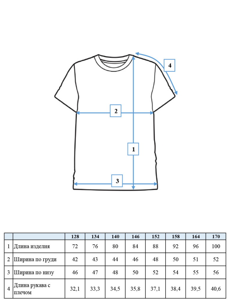 | Рост, см | 98 | 104 | 110 | 116 | 122 | 128 | 134 | 140 | 146 | 152 | 158 | 164 | 170 |