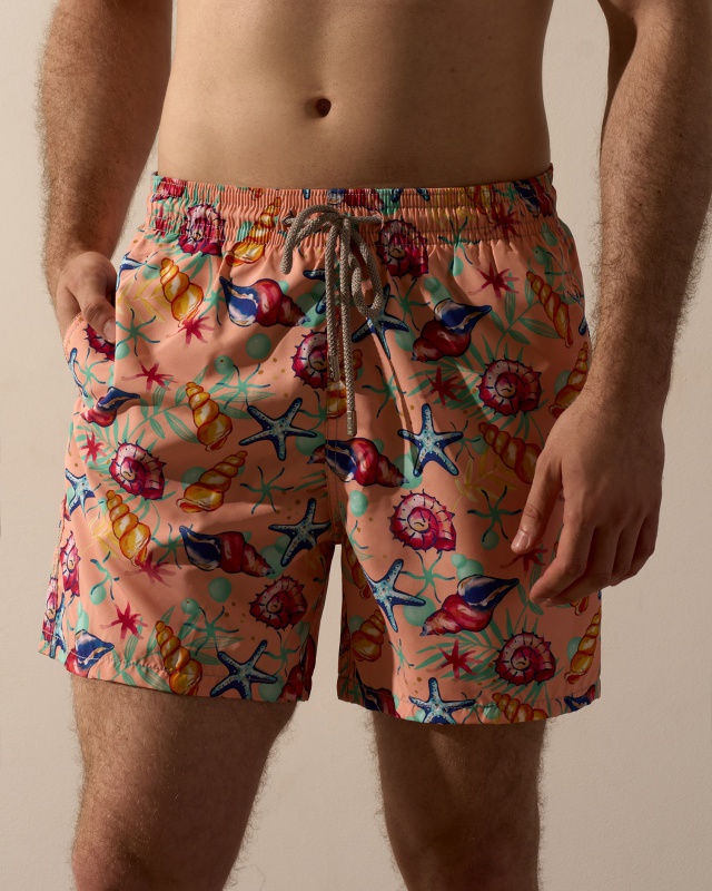 Пляжные шорты:муж. МОДЕЛЬ 1 Ракушки оранж