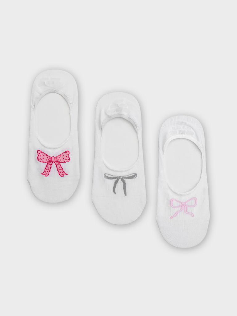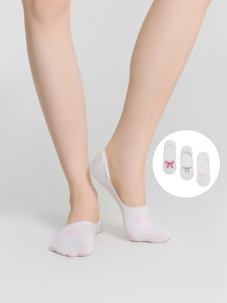 рис. 3157 Мультипак из женских подследников с рисунками в виде бантиков и нанесением силикона на внутреннюю часть пятки. Составляющие: 368A-3158 368A-3159 368A-3160