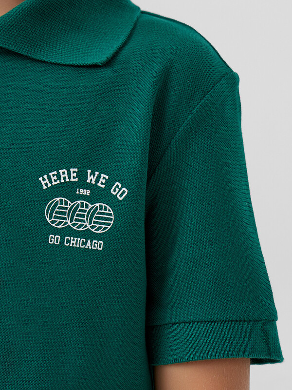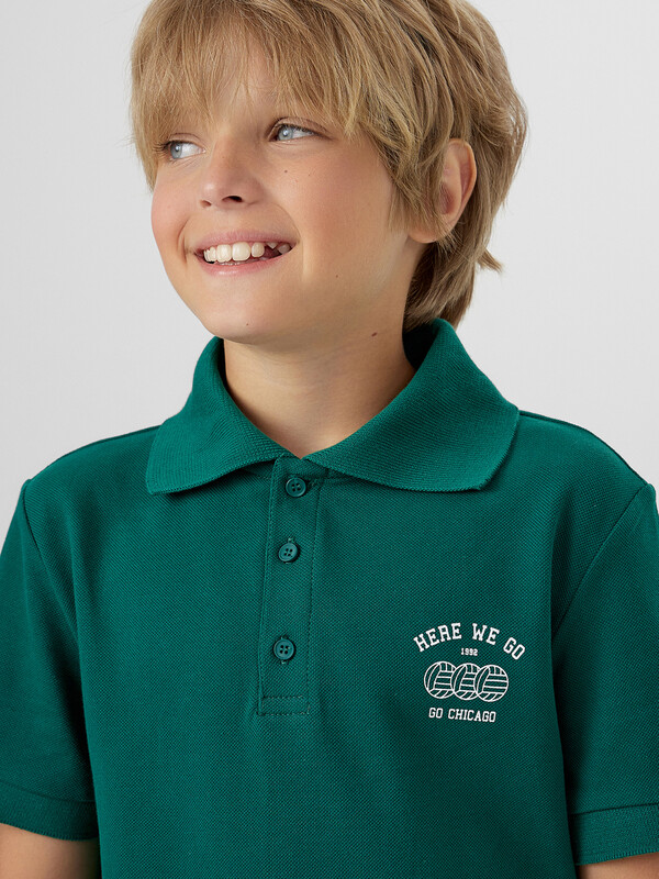 Это свободное поло с баскетбольной тематикой станет любимой вещью в гардеробе активного ребенка.