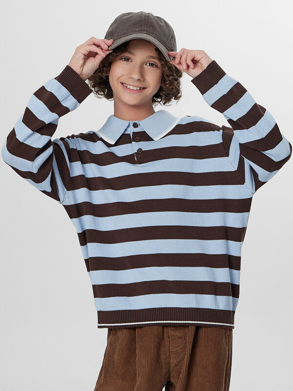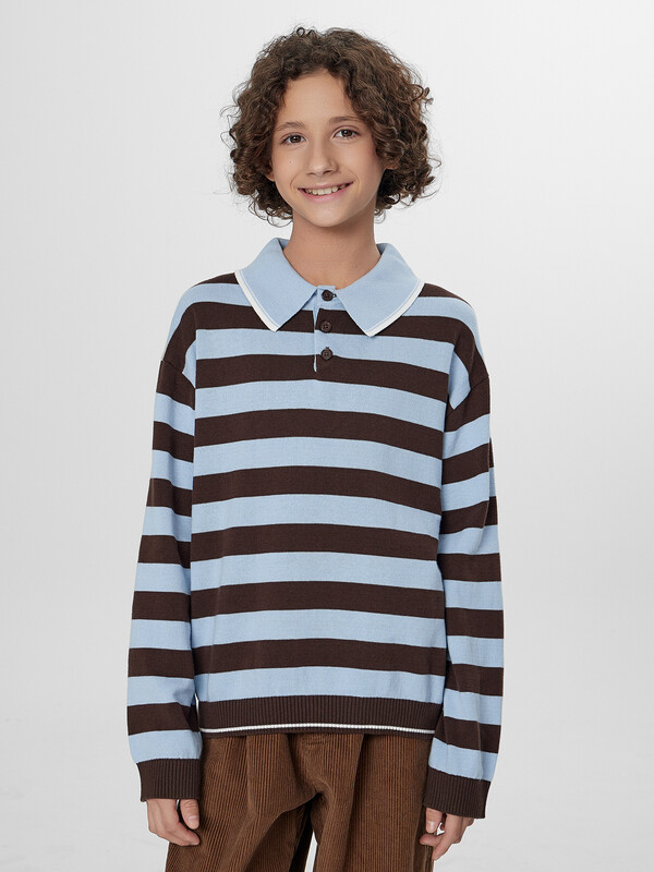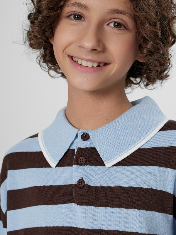 Поло коричнево -голубая полоска
