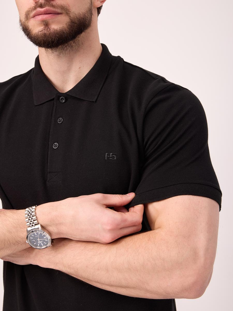 Классическая мужская футболка поло F5, Regular fit (полуприлегающий силуэт), с вышивкой-фирменным логотипом. Выполнена из трикотажного полотна пике (pique). С отложным воротником и короткими рукавами. Застежка-планка застегивается на 3 пуговицы.