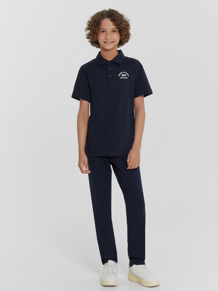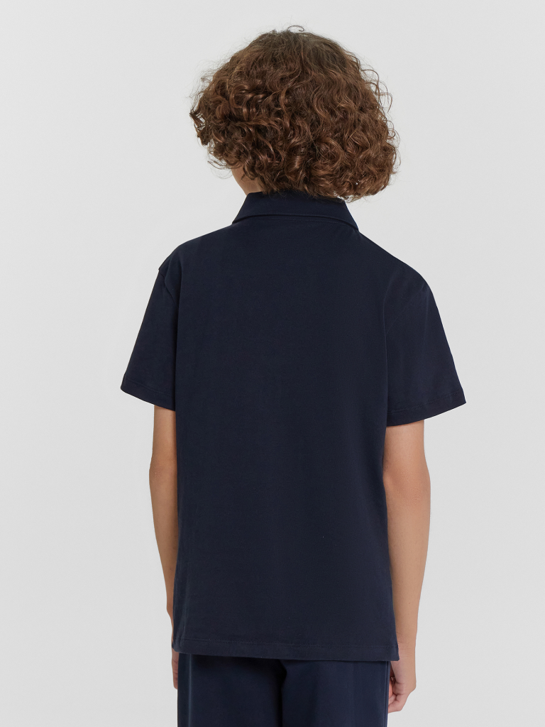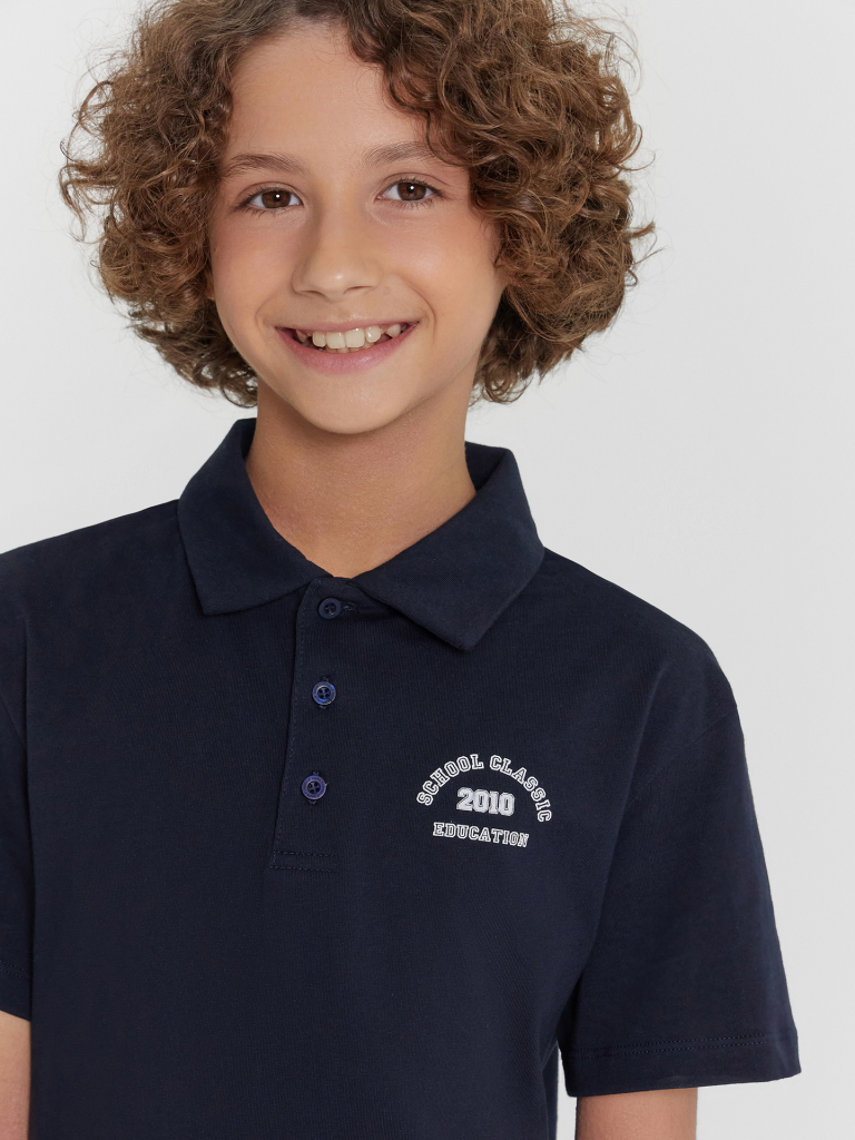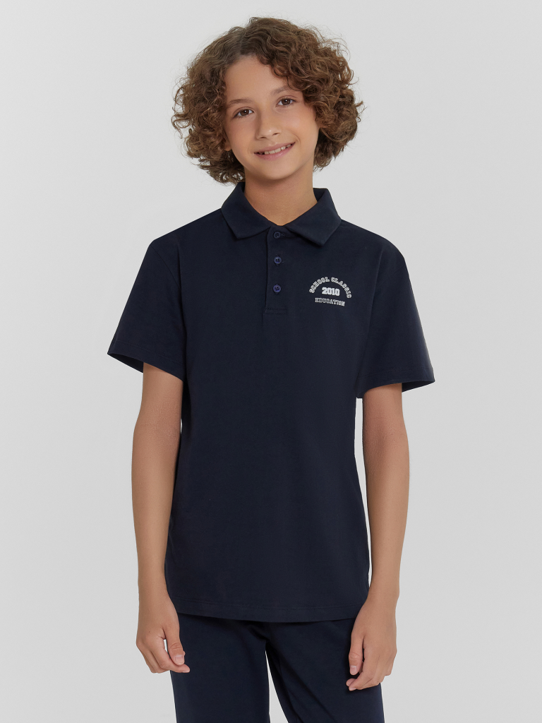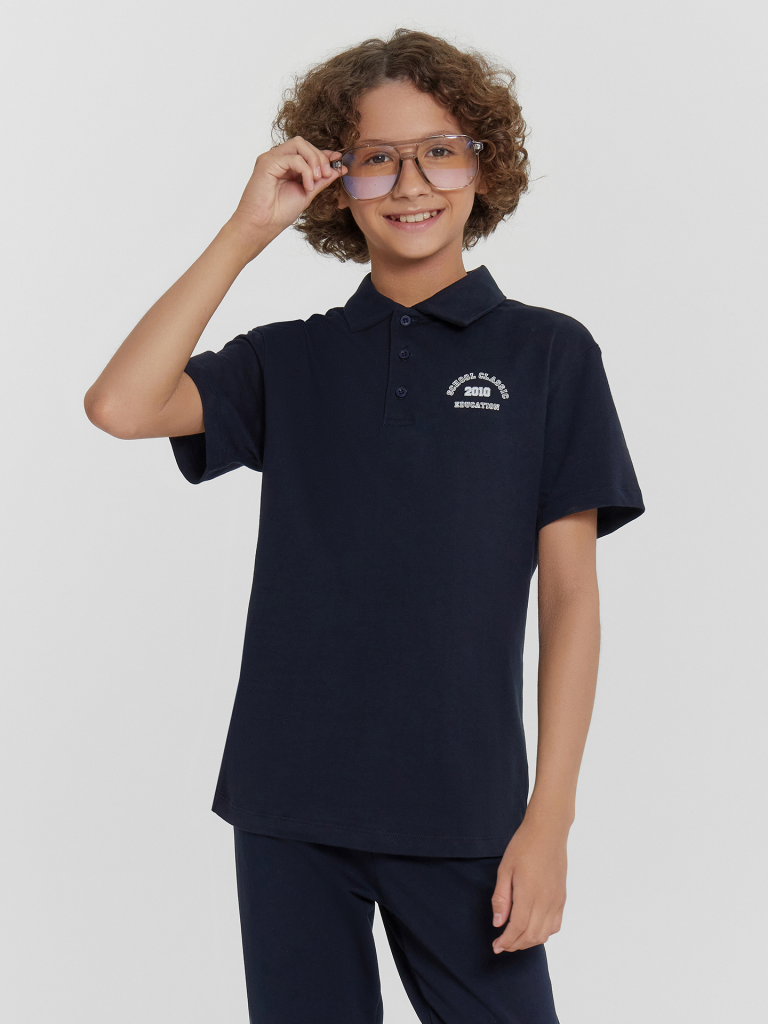 Поло свободного силуэта, перед и спинка цельнокроеные. По переду обработана застежка «поло» на 3 петли и пуговицы (d=10мм). Горловина с воротником стойкой из основного полотна. Рукав втачной, одношовный, плечо спущено. Низу рукава и поло подложены на плоскошовке.