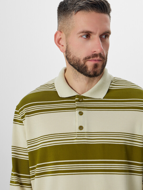 Мужское поло в полоску из мягкого хлопкового пике — удобный и стильный вариант на каждый день. Свободный крой и длина до середины бедра позволяют двигаться без стеснения. Материал пике — это особое плетение нитей, создающее легкую текстурированную поверхность, которая отлично пропускает воздух и сохраняет форму.