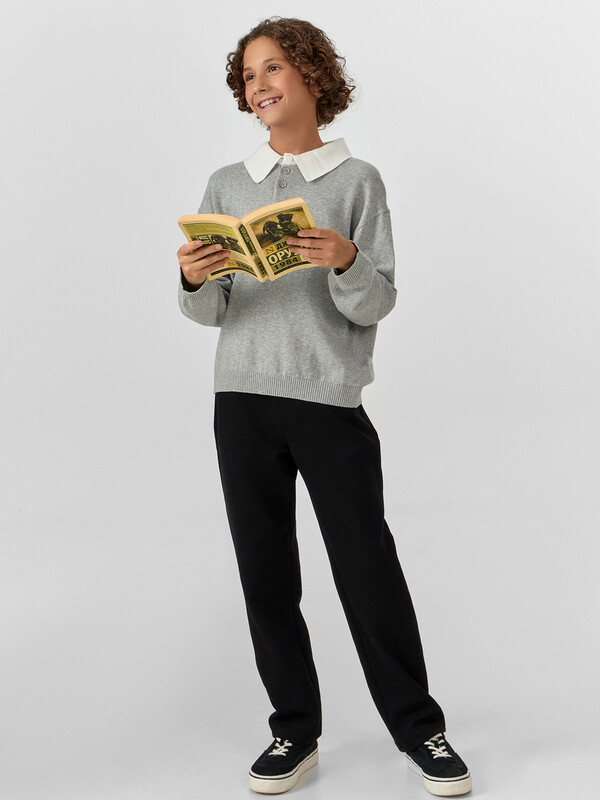 Благодаря удобному крою, не сковывающему движений, и практичному серому цвету, это поло станет незаменимым в детском гардеробе. Оно одинаково хорошо подойдет как для школьных занятий, так и для семейных праздников или прогулок с друзьями.