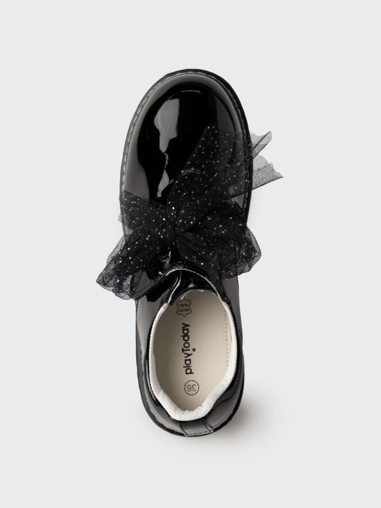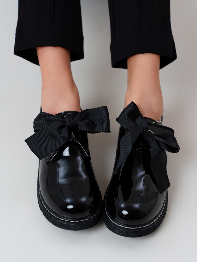 Полуботинки из искусственной лаковой кожи на широкой липучке для девочки подростка. Удобная застежка-липучка дает возможность регулировать обувь на любой подъем. Модель имеет дополнительный бант, при смене которого можно менять свой стиль с романтического на классический. Подкладка и стелька - 100% натуральная кожа. Подошва из ТПР не скользит и устойчива к истиранию. Формоустойчивый задник поддерживает стопу в правильном положении. Эргономичная форма колодки обеспечивает правильное формирование стопы ребенка. Туфли для девочки школьницы отлично подойдут как сменка в школу , а также для прогулок: весна, лето, ранняя осень.