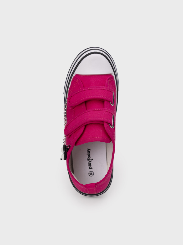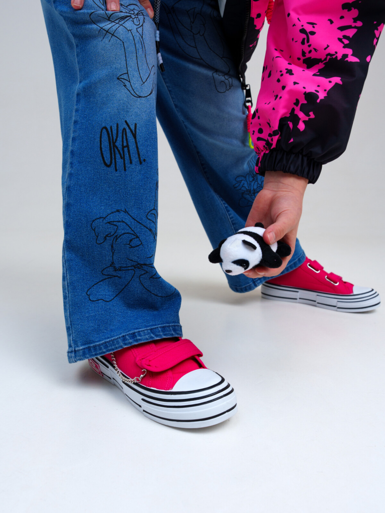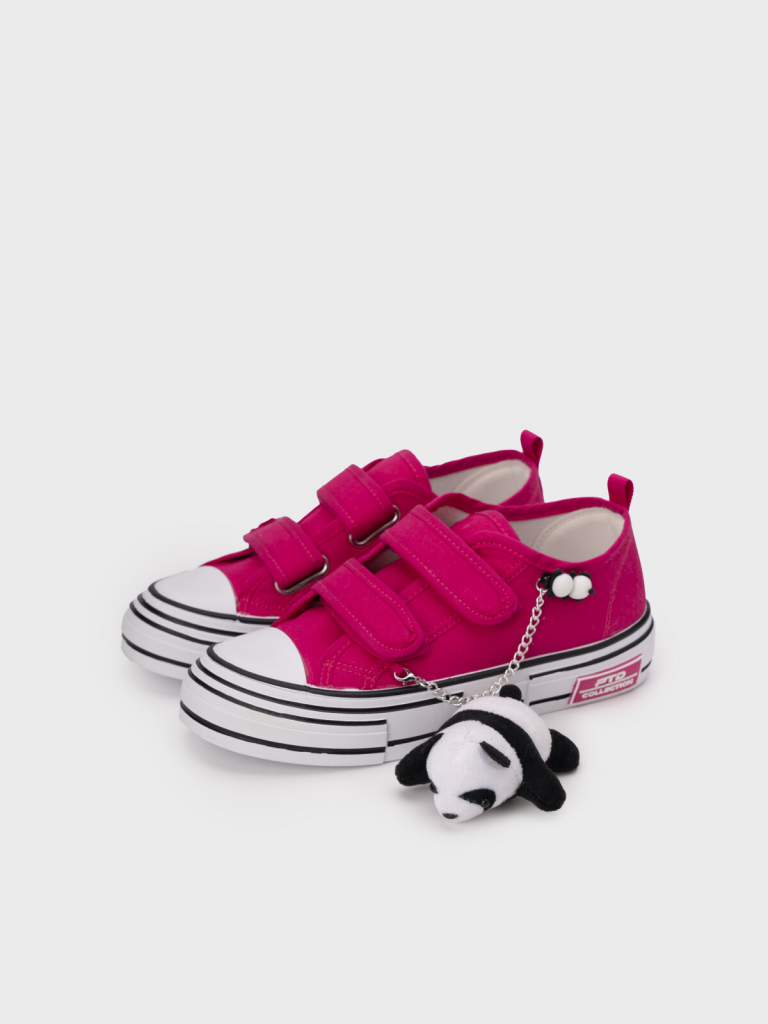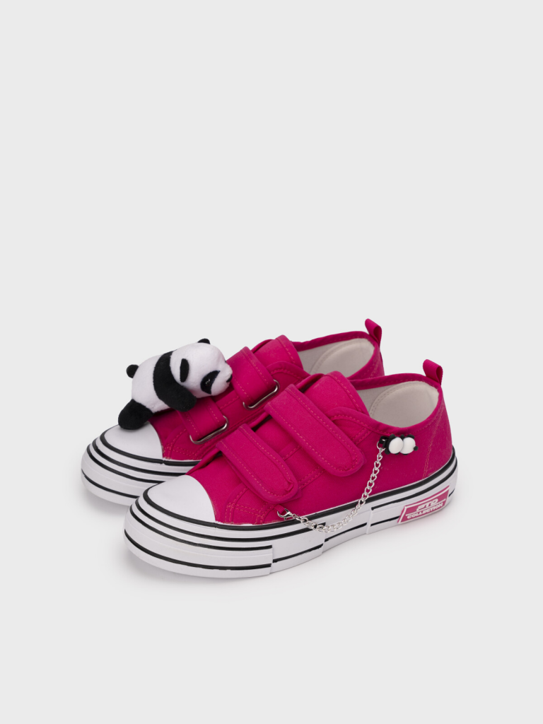 Стильные кеды с пандой для девочки подростка. Две липучка создают удобство при обувании. На одной полупаре имеется игрушка-Панда на цепочке с клипсой, которую можно разместить на любую полупару или при желании снять. Верх обуви выполнен из воздухопроницаемого текстиля. Текстильная хлопковая подкладка обладает высокой гигроскопичностью. Текстильная хлопковая стелька вынимается для просушки. Подошва из ПВХ легкая и гибкая, устойчива к истиранию.