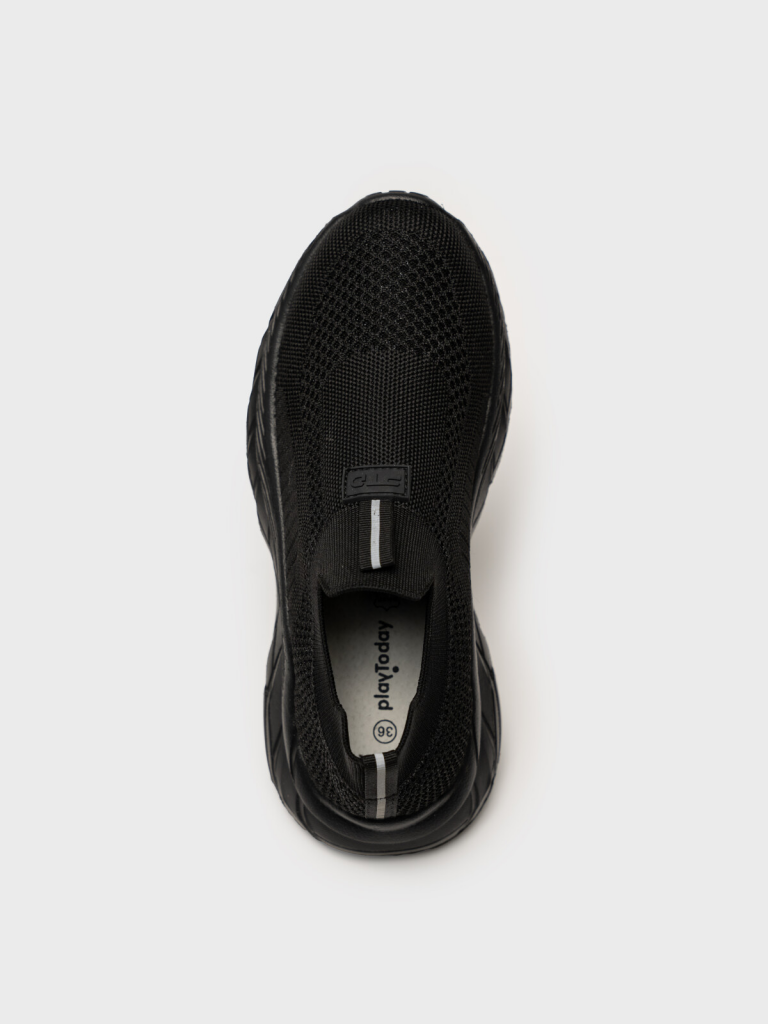 Текстильные стрейчевые кроссовки для мальчика. Верх обуви выполнен из дышащего, хорошо тянущегося, текстиля. Износостойкая подошва из ЭВА легкая, гибкая и обладает хорошими амортизационными свойствами. Конструкция socks удобна при обувании. Кожаная профилированная стелька с анатомической формой подсводника обеспечивает правильную нагрузку на стопу. Эргономичная форма колодки обеспечивает правильное формирование стопы ребенка. Стильные слипоны отлично подойдут для занятий физкультурой, как сменка в школу и для прогулок: весна, лето, осень.