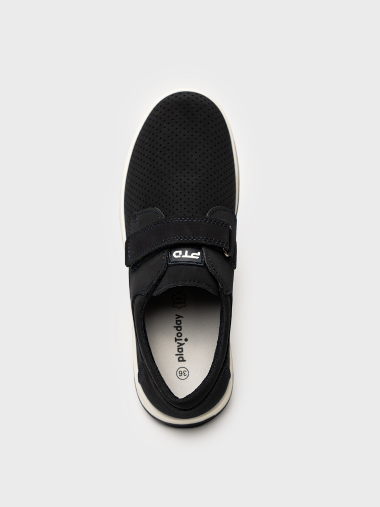 Школьные полуботинки для мальчика из натуральной кожи. Кроссовки выполнены из натурального нубука. Удобная конструкция модели на липучке позволяет регулировать ее на любой подъем. Текстильная подкладка обладает хорошей износостойкостью. Кожаная профилированная стелька с анатомической формой подсводника обеспечивает правильную нагрузку на стопу. Гибкая, не скользкая подошва из ТПР обладает хорошей износостойкостью. Формоустойчивый задник поддерживает стопу в правильном положении. Эргономичная форма колодки обеспечивает правильное формирование стопы ребенка. Стильные туфли для мальчика отлично подойдут как сменка в школу и для прогулок: весна, лето, осень.