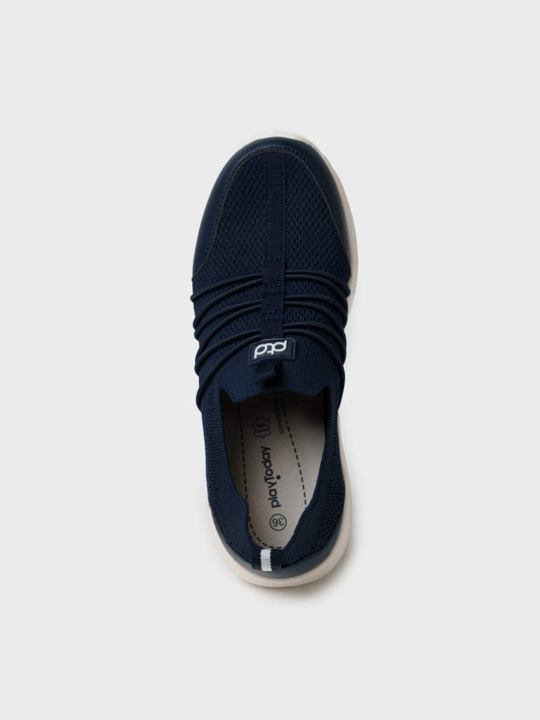 Текстильные стрейчевые кроссовки для мальчика. Верх обуви выполнен из дышащего, хорошо тянущегося, текстиля. Износостойкая белая подошва из ЭВА легкая, гибкая и обладает хорошими амортизационными свойствами. Конструкция socks удобна при обувании. Кожаная профилированная стелька с анатомической формой подсводника обеспечивает правильную нагрузку на стопу. Эргономичная форма колодки обеспечивает правильное формирование стопы ребенка. Стильные слипоны отлично подойдут для занятий физкультурой, как сменка в школу и для прогулок: весна, лето, осень.
